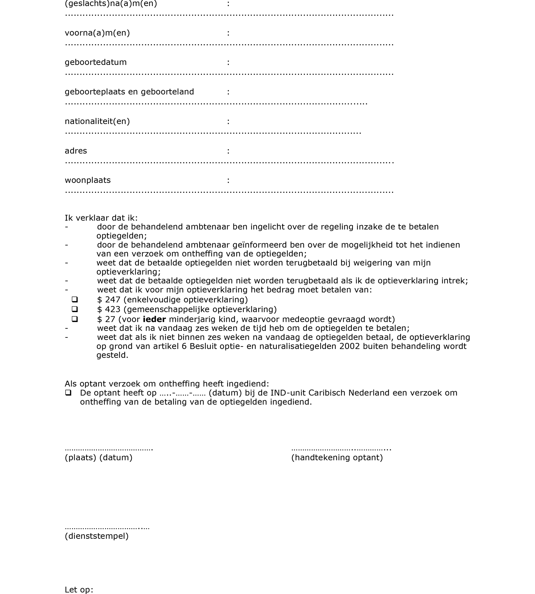 Gelet op de Rijkswet op het Nederlanderschap, het Besluit verkrijging en verlies Nederlanderschap, het Besluit optie- en naturalisatiegelden 2002, de Regeling verkrijging en verlies Nederlanderschap;