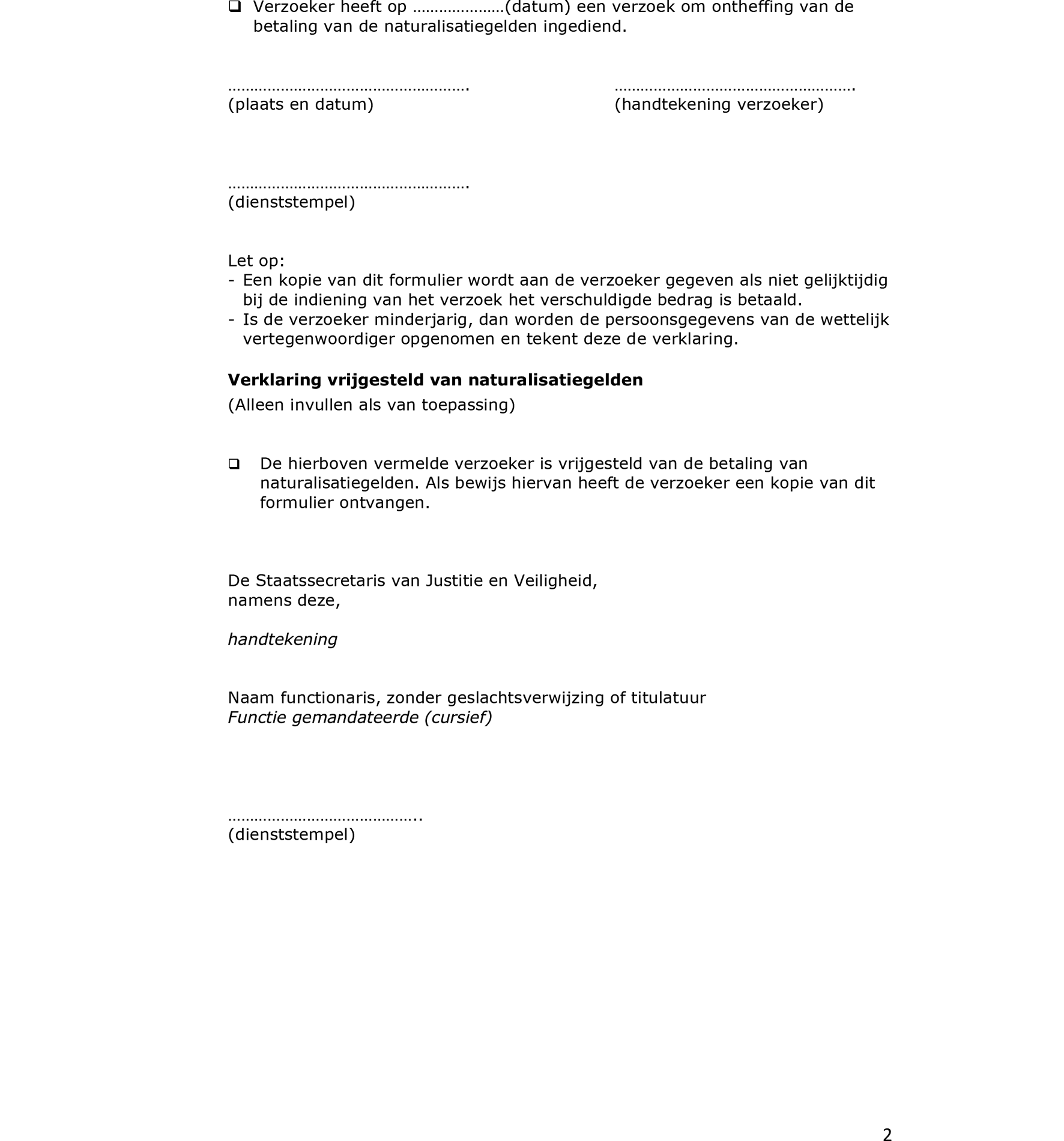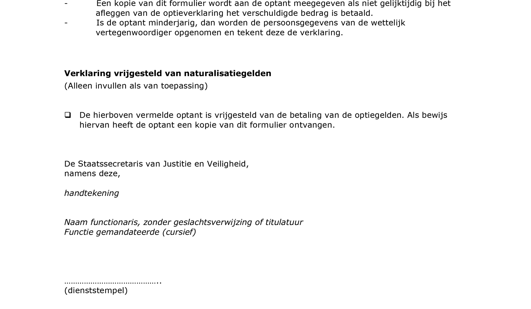 alsook: Verklaring vrijgesteld van naturalisatiegelden