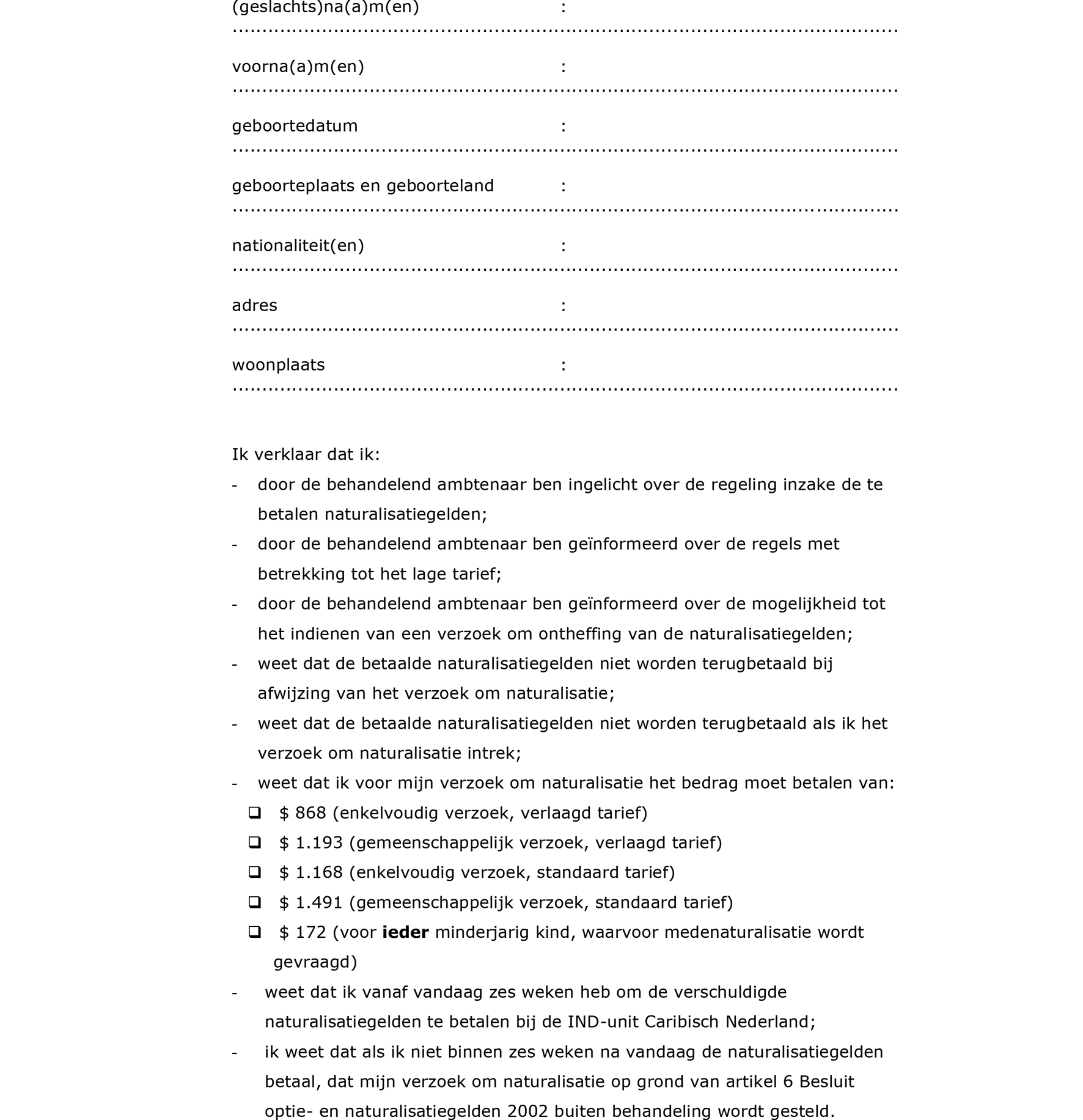Verklaring ‘Ingelicht over betaling van naturalisatiegelden’ tevens inverzuimstelling;