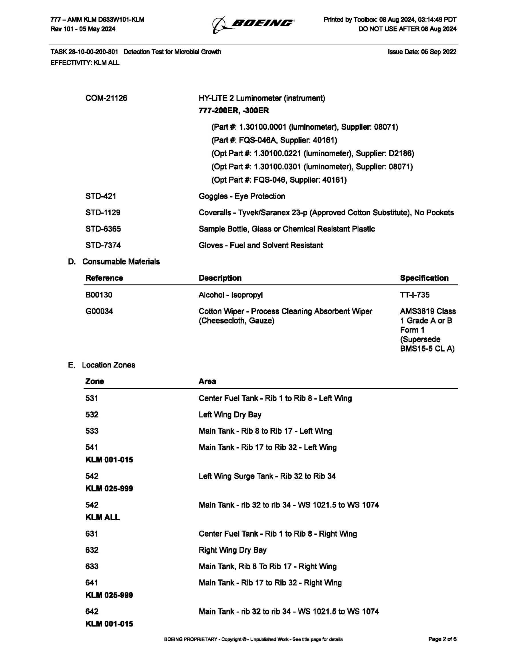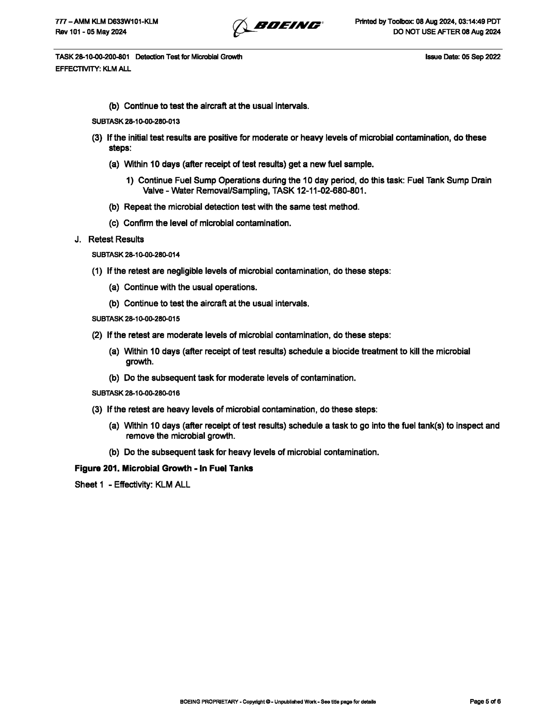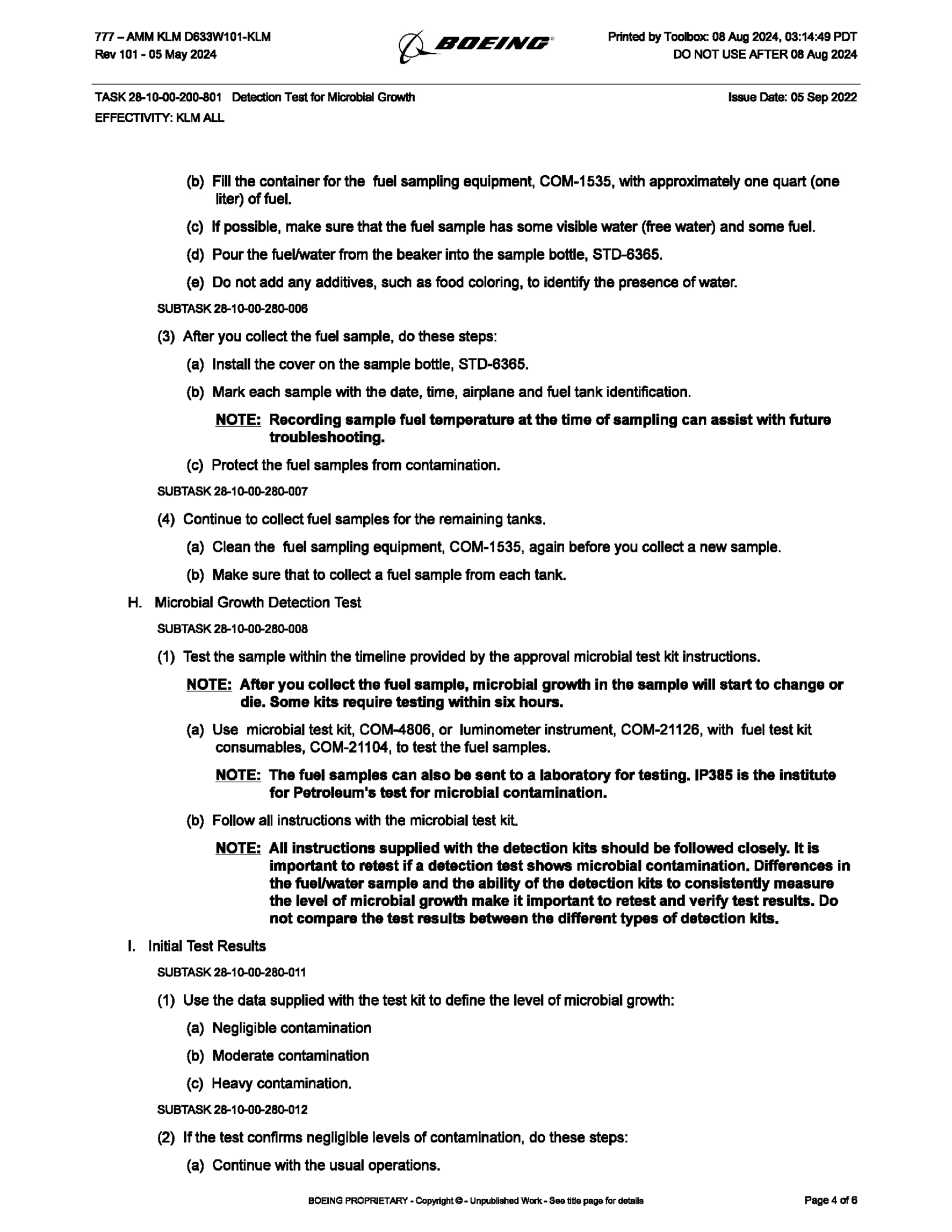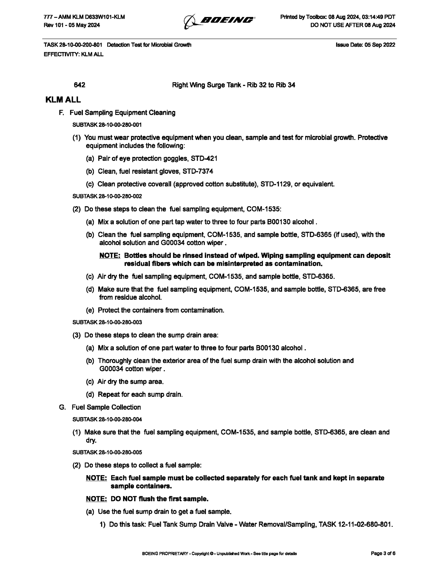 De Boeing procedure schrijft voor dat water uit de tanks wordt verwijderd. Voor dit afvalwater zijn EURAL voorwaarden van toepassing en dit moet op een milieu veilige manier worden verwerkt. De afvalbehandeling moet de concentratie borium verder reduceren voor lozing naar het oppervlaktewater.