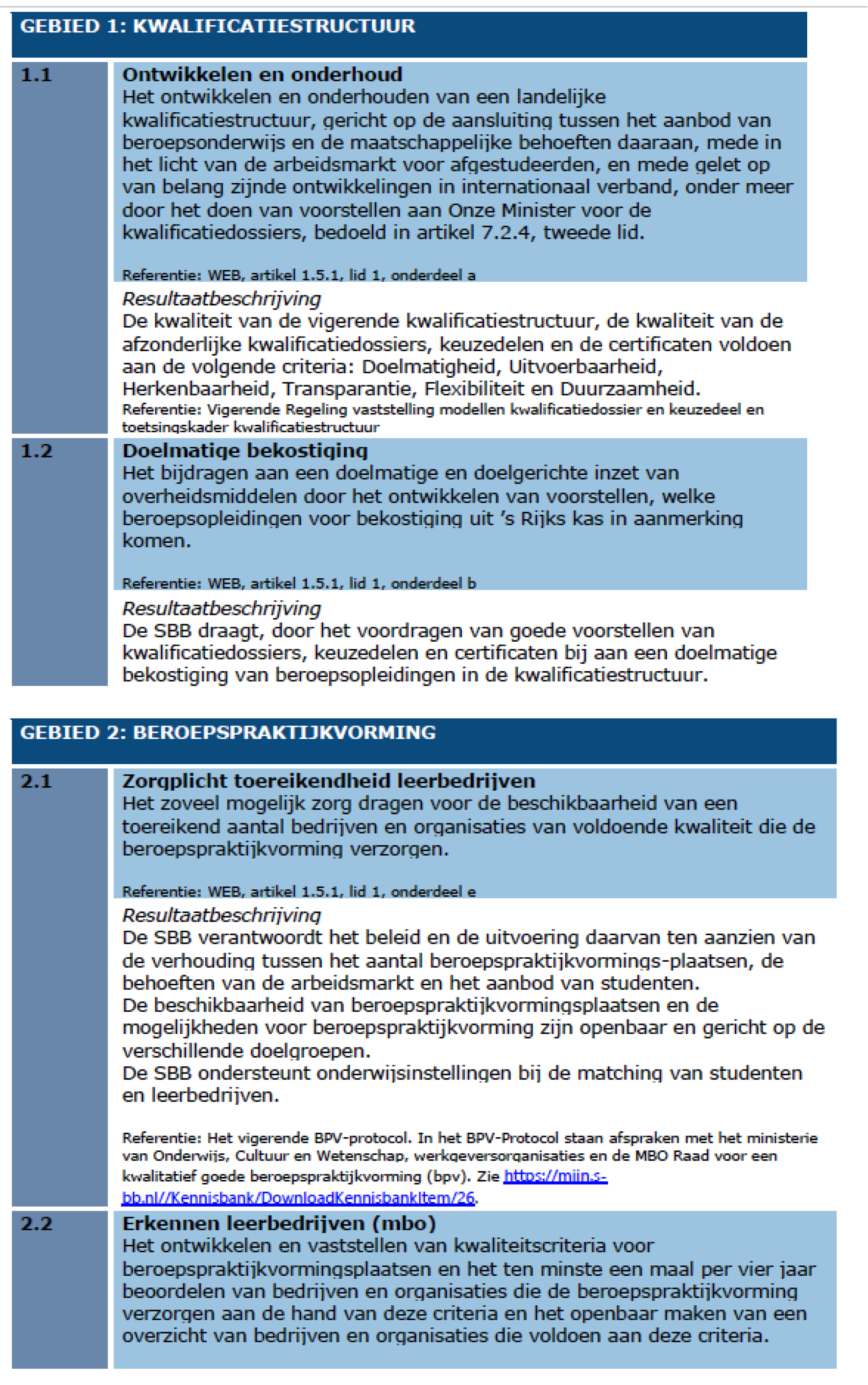 – Gebied 1: Kwalificatiestructuur – WEB, artikel 1.5.1 lid 1, onderdeel a en b