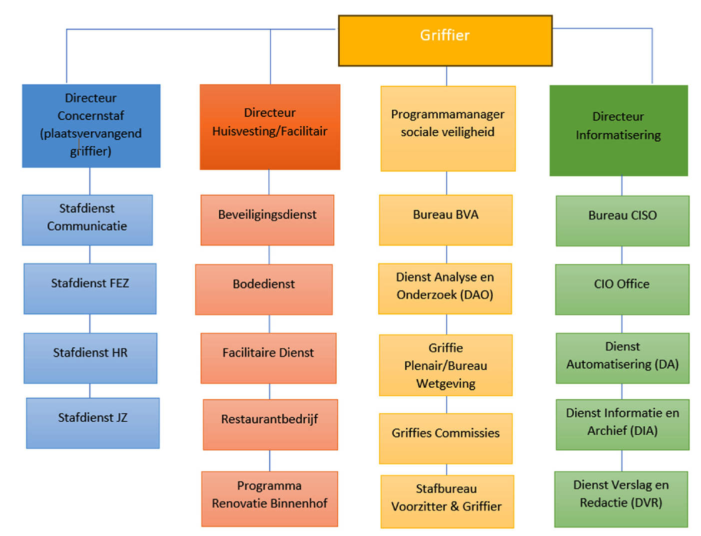 de Griffier of directeur met onder zich een aantal organisatieonderdelen;
