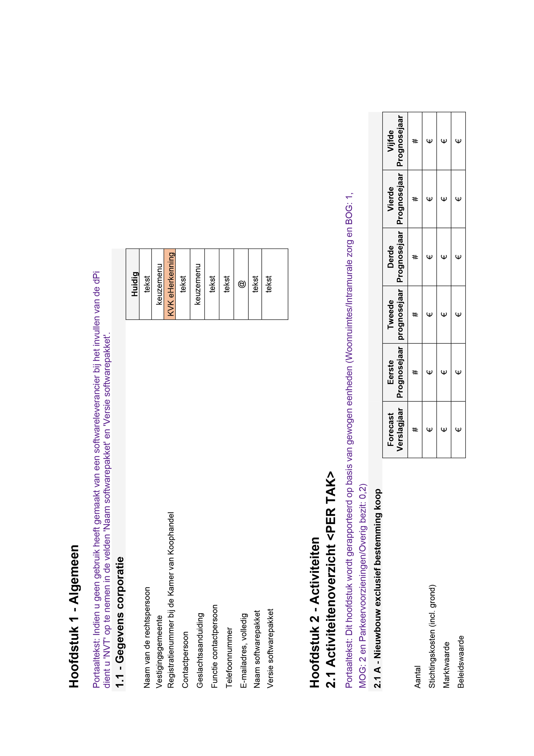 Op grond van artikel 43, eerste lid, van de Woningwet dienen woningcorporaties een overzicht op te stellen van de werkzaamheden die zij en de met hen verbonden ondernemingen in de eerstvolgende vijf kalenderjaren voornemens zijn te verrichten, ook wel de Prospectieve informatie (dPi) genoemd. Artikel 44a, eerste lid, aanhef en onderdeel a, van de Woningwet, bepaalt dat het overzicht jaarlijks voor 15 december moet worden verstrekt aan de minister, de colleges van burgemeester en wethouders en de bewonersorganisaties, en moet worden ingericht overeenkomstig bij ministeriële regeling te geven voorschriften. Uit artikel 19 van de RTIV volgt dat voor de inrichting van het overzicht gebruik moet worden gemaakt van het model dat is opgenomen in bijlage 5 bij de RTIV.