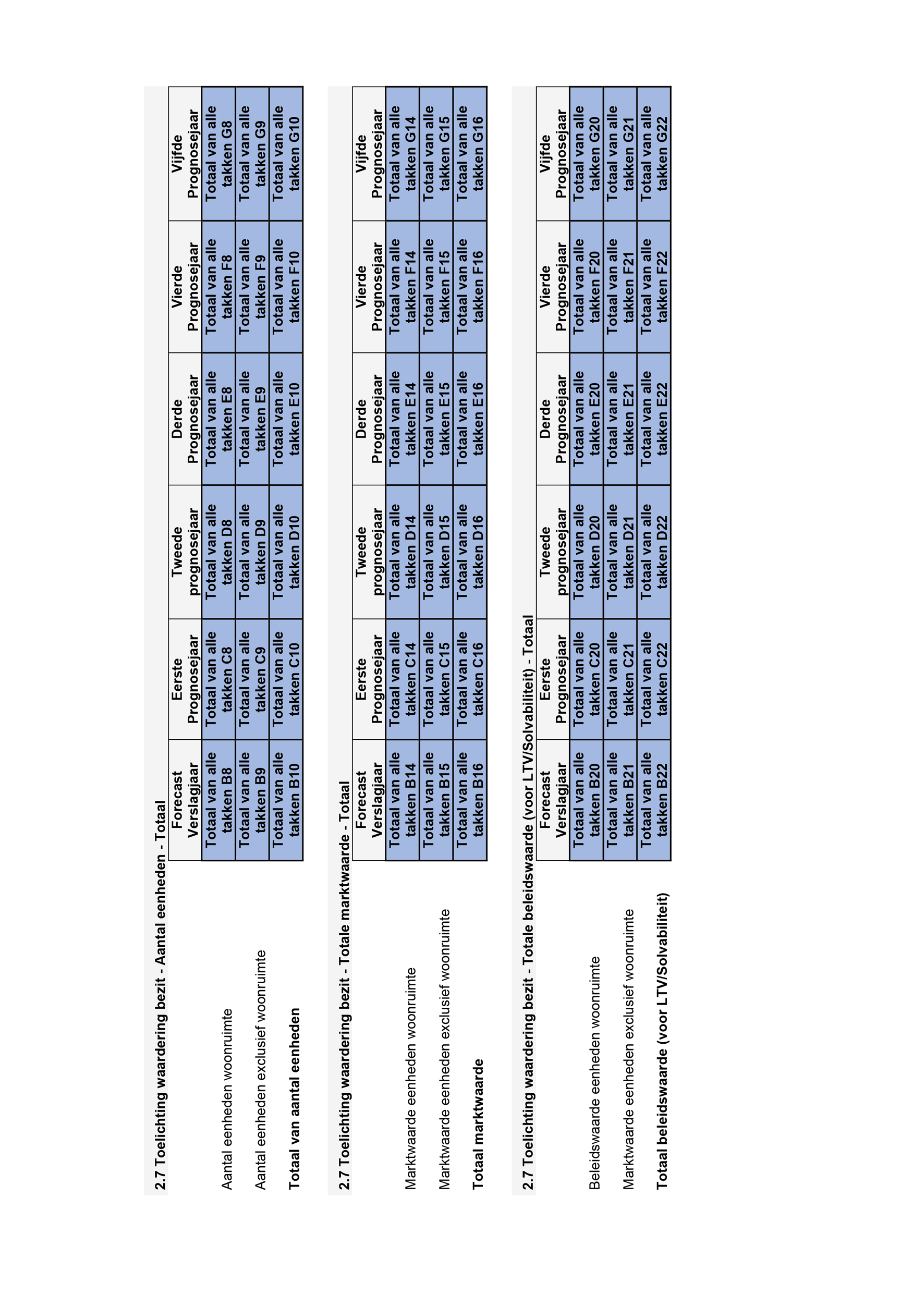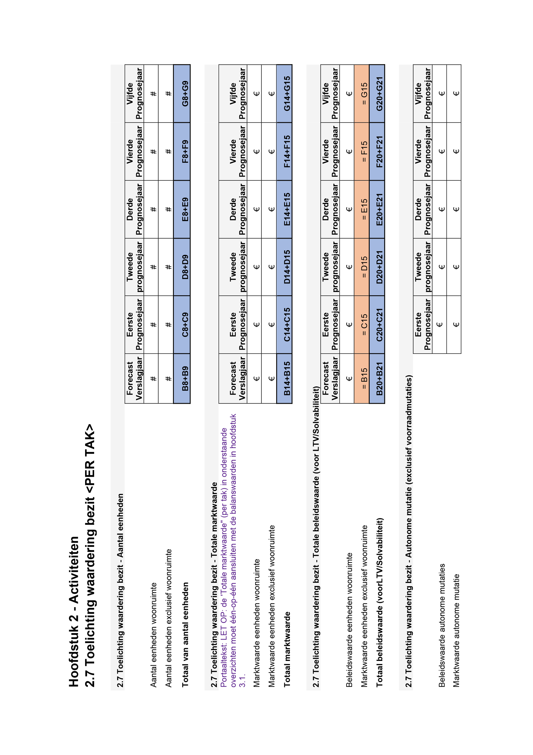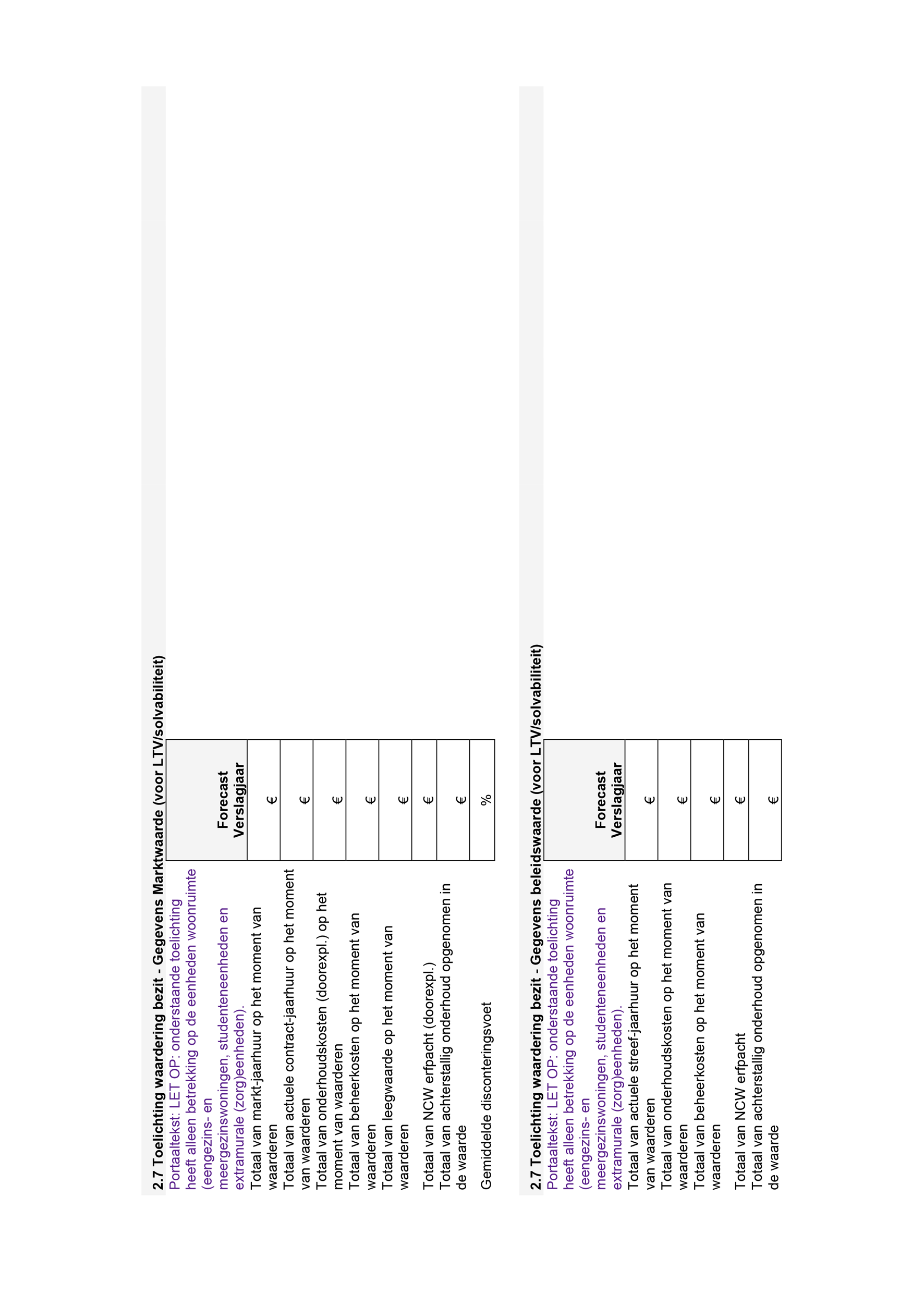 In paragraaf 2.7 is het door de nieuwe beleidswaardebepaling niet meer nodig om aan corporaties te vragen om te rapporteren over wat de gemiddelde disconteringsvoet doorexploiteren zou betekenen. Daarnaast zullen ook de afslagen om van de marktwaarde de beleidswaarde te bepalen worden verwijderd. Door deze wijzigingen zullen enkele tabellen worden samengevoegd en zal de volgorde veranderen.