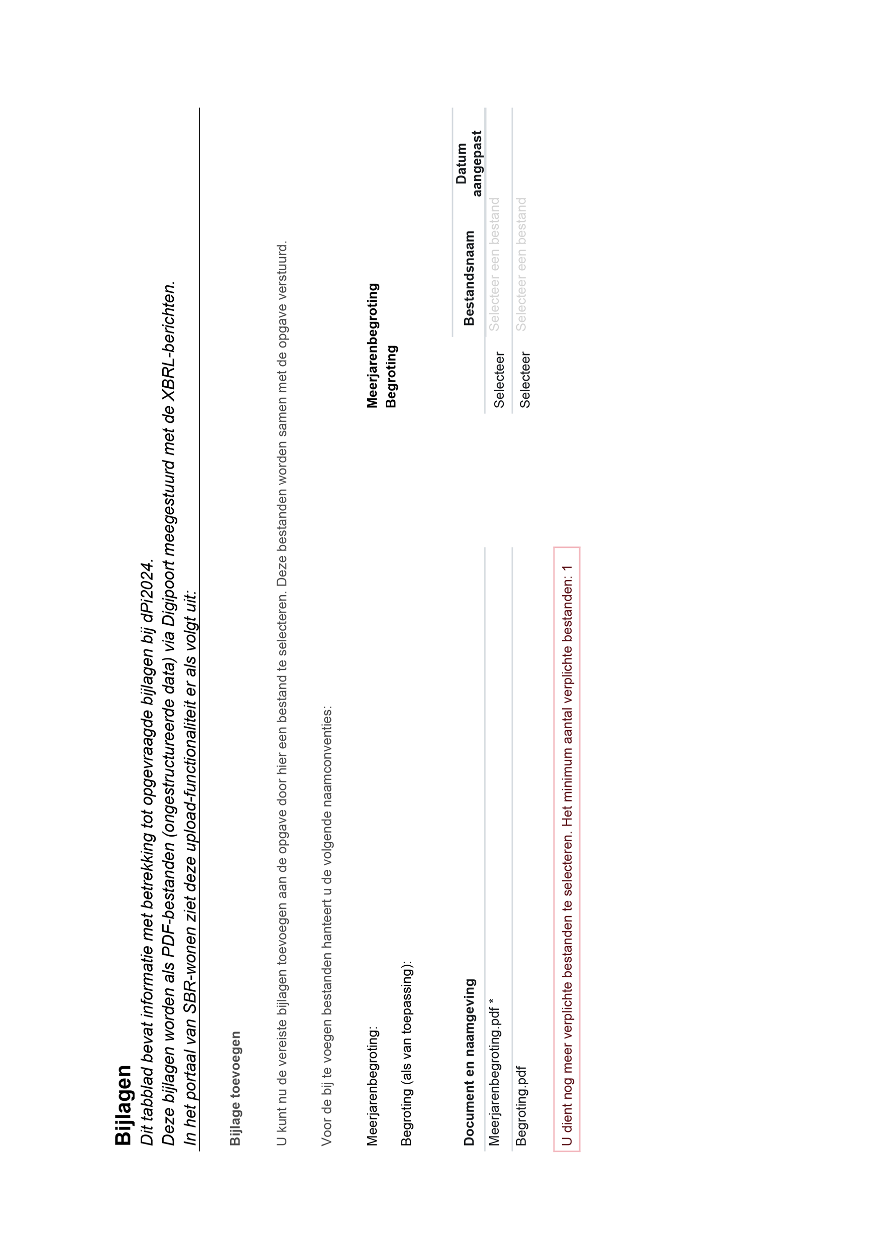 Evenals bij dPi 2023, wordt dPi 2024 op basis van Standard Business Reporting (SBR) uitgevraagd. Hiermee wordt aangesloten op de standaard van de Nederlandse Taxonomie.