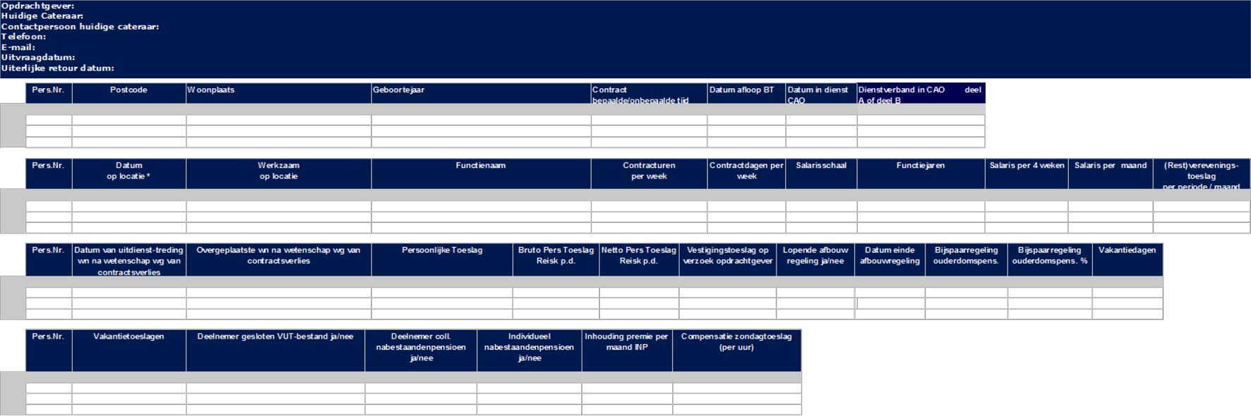 Deze bijlage geldt vanaf 1 januari 2015 d.w.z. is van toepassing op contractwisselingen waarbij de cateringovereenkomst ingaat op of na 1 januari 2015.