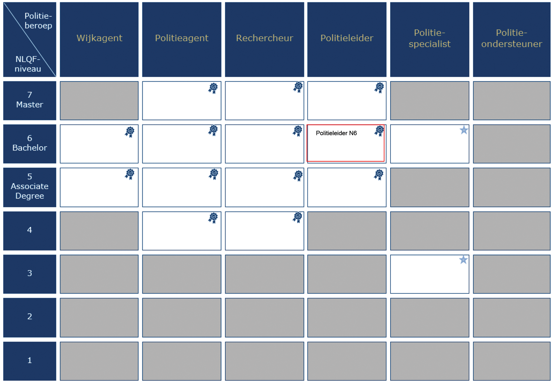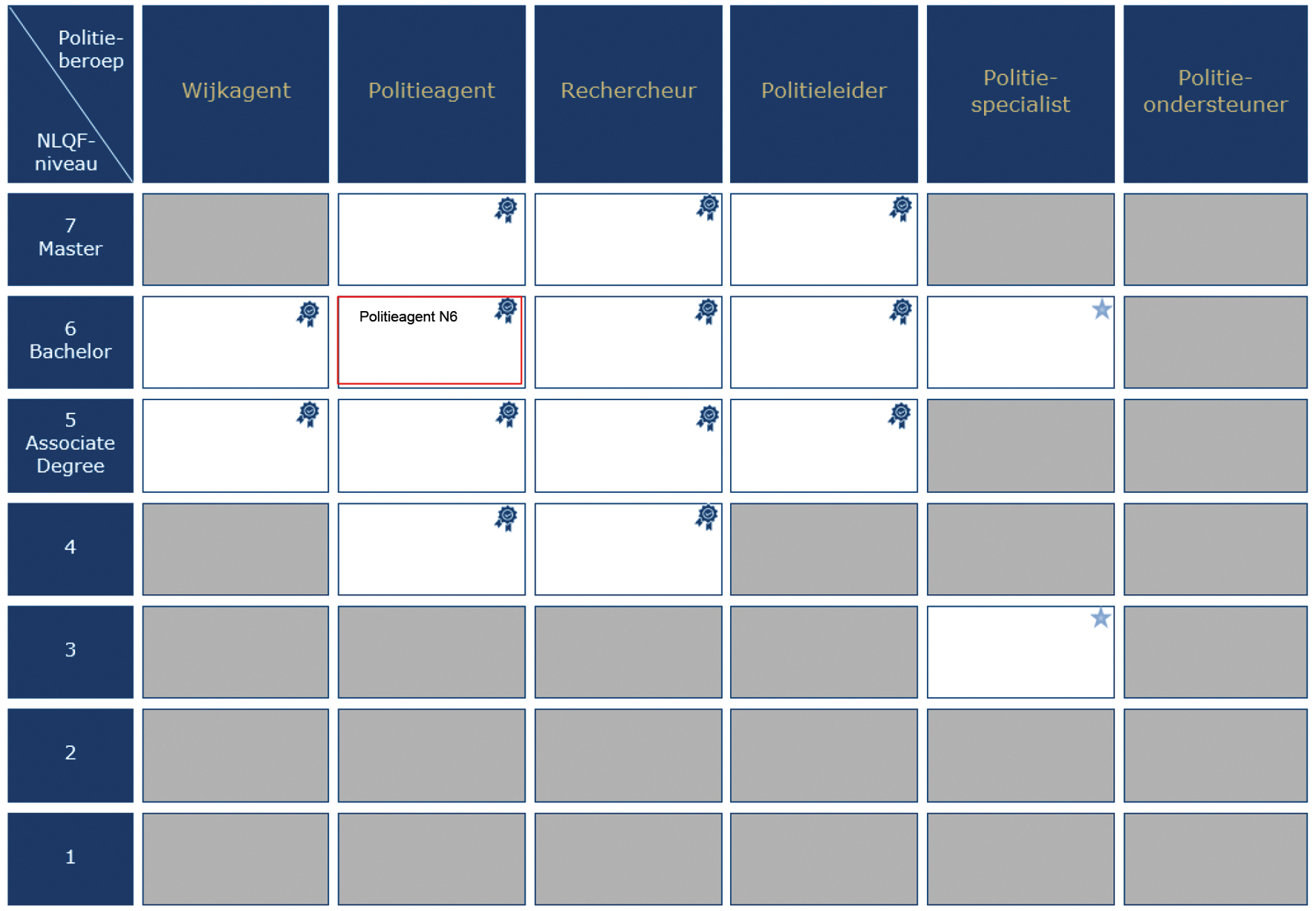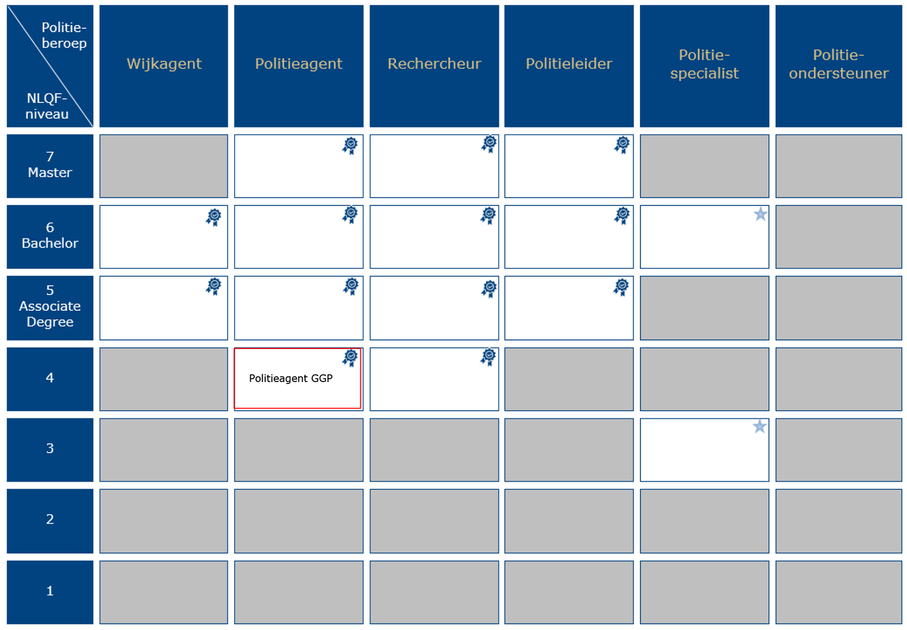 In 2019 heeft de politie nieuwe beroepsprofielen vastgesteld. Op basis hiervan heeft de Politieacademie een programma gestart voor het ontwikkelen van kwalificaties als grondslag voor nieuwe politieopleidingen in aanvulling op reeds bestaande kwalificatie(dossier)s en daarop gebaseerde opleidingen. Dit programma is in 2022 afgerond met het opleveren van 15 nieuwe kwalificaties voor het basispolitieonderwijs. De nieuwe kwalificaties zijn toekomstbestendig, sluiten beter aan op de actuele beroepspraktijk. De mogelijkheden voor doorstroom zowel binnen als buiten de politieorganisatie zijn verbeterd, onder meer doordat in het ontwikkeltraject is aangesloten bij de bedoeling van de Wet Educatie en Beroepsonderwijs, Wet Hoger onderwijs en Wetenschappelijk Onderzoek en de systematiek van het Nederlands Kwalificatieraamwerk (NLQF) en de Nederlands-Vlaamse Accreditatie Organisatie (NVAO) wat betreft het niveau van de opleidingen. Het niveau van de kwalificaties die de basis vormen voor de opleidingen politieagent GGP en politieagent VVC is gebaseerd op niveau 4 van het NLQF. Een definitieve inschaling in het NLQF van deze opleidingen moet nog plaatsvinden. Op 10 juni 2022 heeft de Minister van Justitie en Veiligheid in de beleidsreactie op het advies van de Politieonderwijsraad de eerdergenoemde 15 nieuwe kwalificaties voor basispolitieopleidingen vastgesteld. Deze basisopleidingen geven toegang tot verschillende politieberoepen.