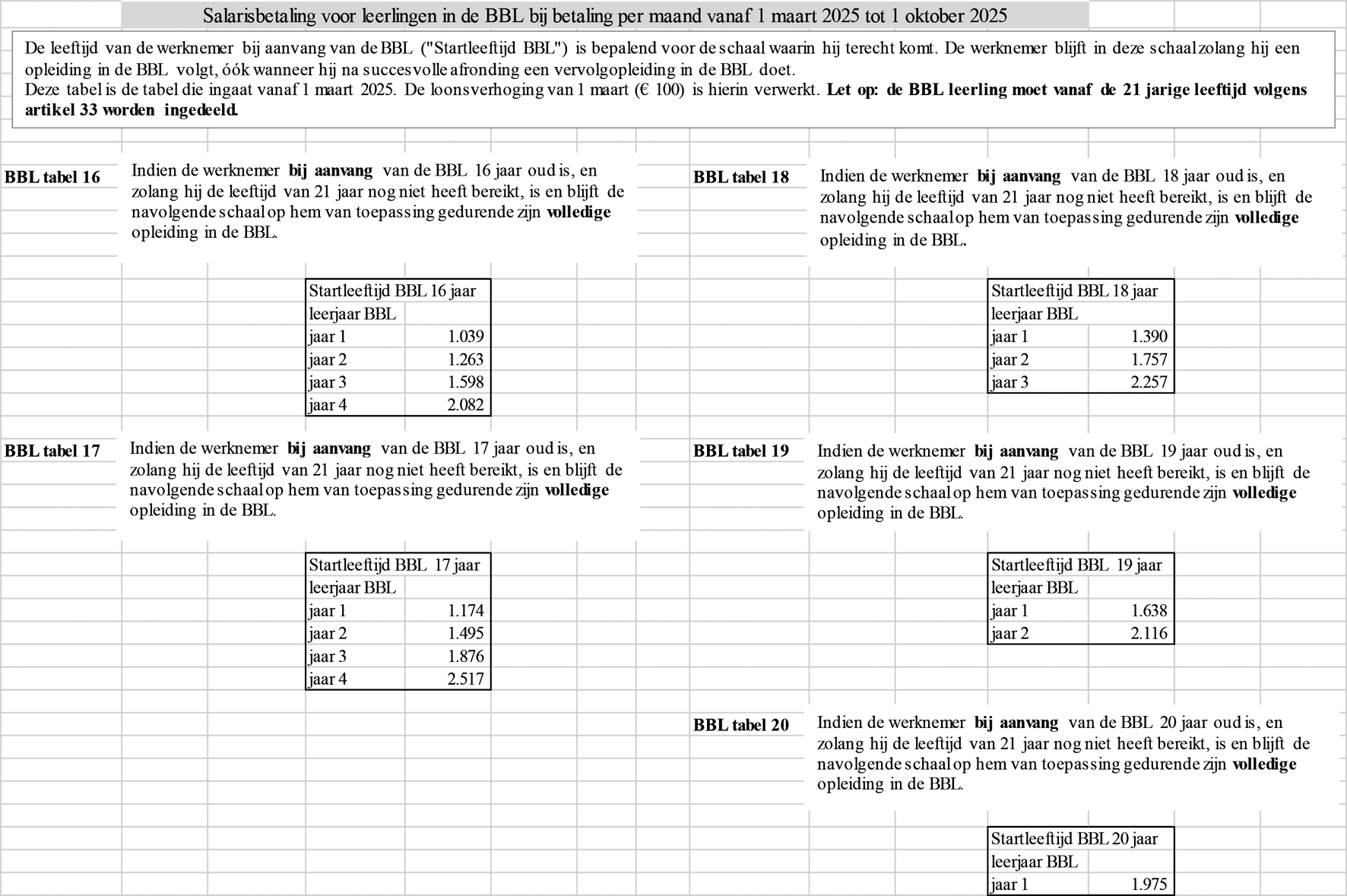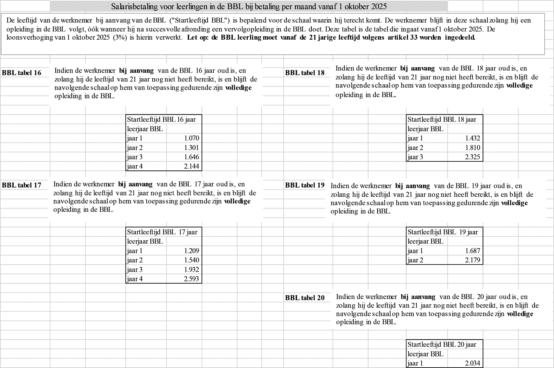 • Salaristabellen, artikel 33a, 33b, 33c en 33d.