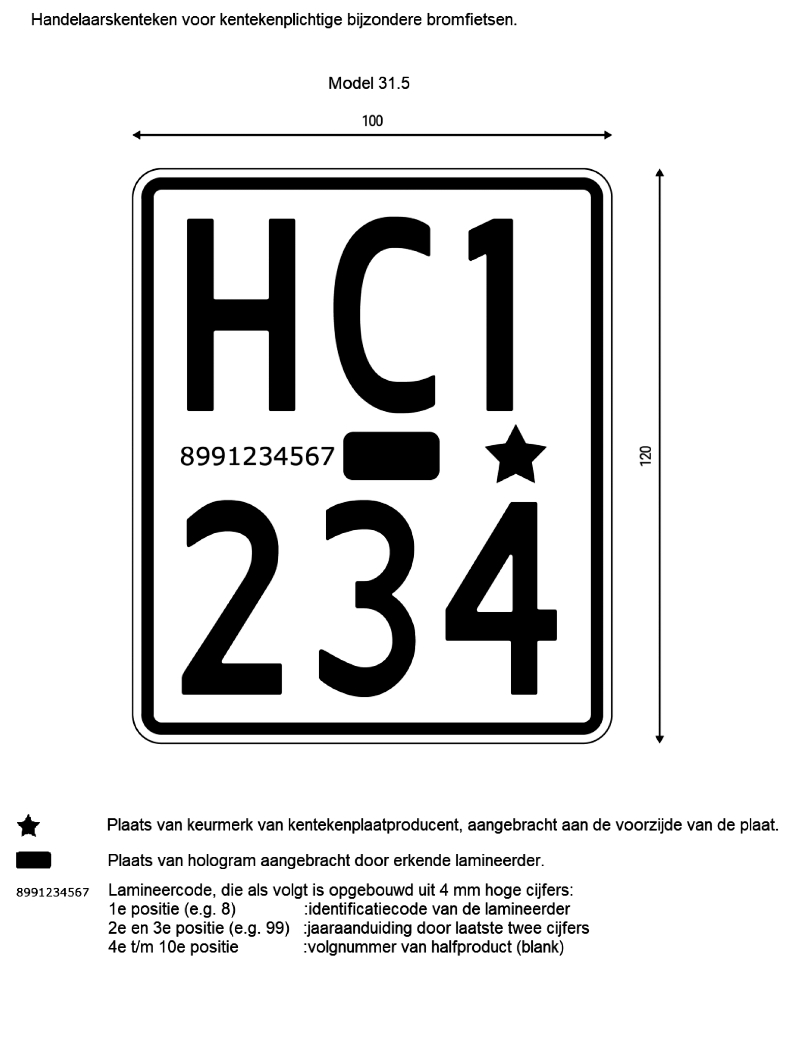 Met onderdeel A is artikel 3 van de Regeling kentekens en kentekenplaten gewijzigd. Artikel 3 schrijft voor welke modellen voor kentekens mogen worden gebruikt op voertuigen. Voor bijzondere bromfietsen wordt model 31.1 gebruikt als standaardmodel. Model 31.5 is het model voor het handelaarskenteken bij bijzondere bromfietsen. Hierbij is de volgorde van de nummering van de modellen aangehouden die ook wordt gehanteerd modellen voor andere voertuigen, waarbij model X.5 telkens het handelaarskenteken betreft.