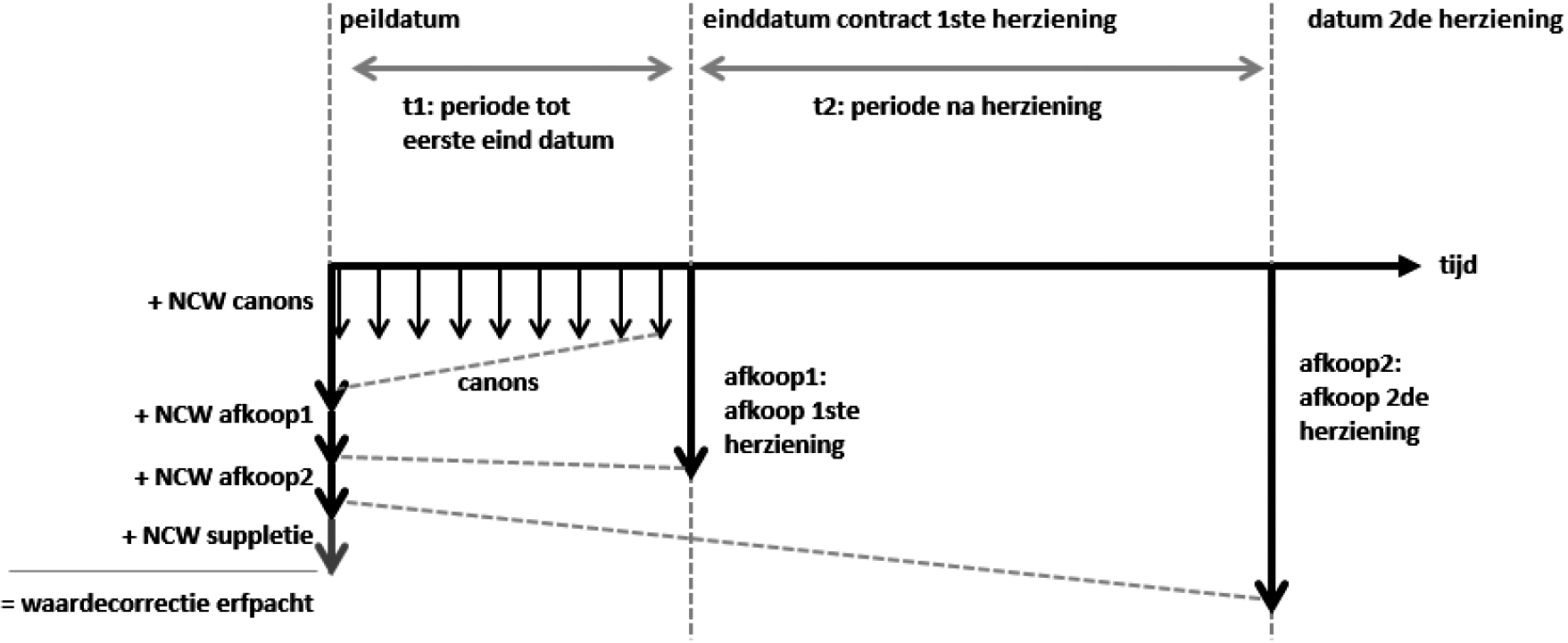 Figuur 3: schematische weergave van de drie huurcomponenten in de eindwaarde doorexploiteren