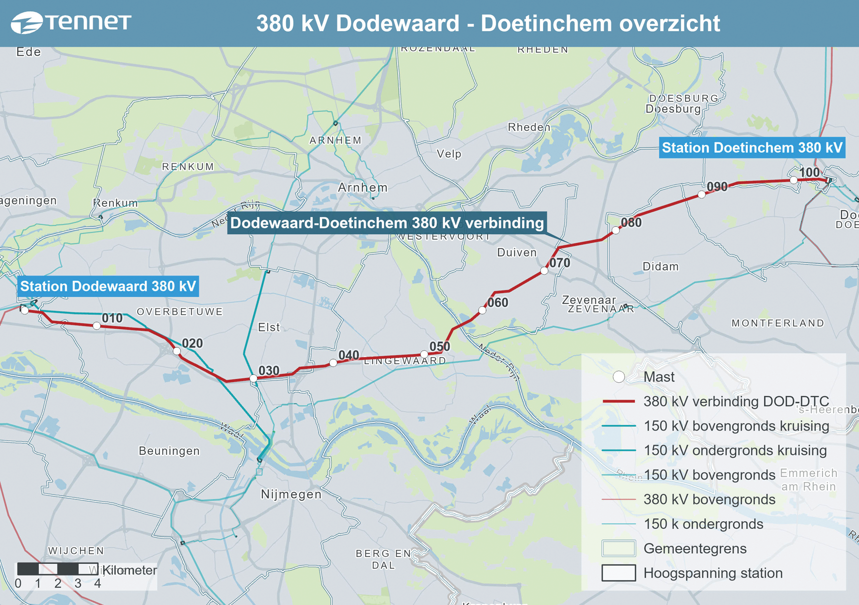 De hoogspanningsverbindingen van 380 kV vormen de snelwegen van het Nederlandse hoogspanningsnet. Deze verbindingen bezitten een grote transportcapaciteit. Maar op steeds meer plekken, nu en in de toekomst, lopen we tegen de grenzen van die transportcapaciteit aan. Het bestaande 380 kV-hoogspanningsnet wordt daarom stapsgewijs opgewaardeerd. Hier hoort ook de bestaande 380 kV-verbinding tussen Dodewaard en Doetinchem-Langerak bij.