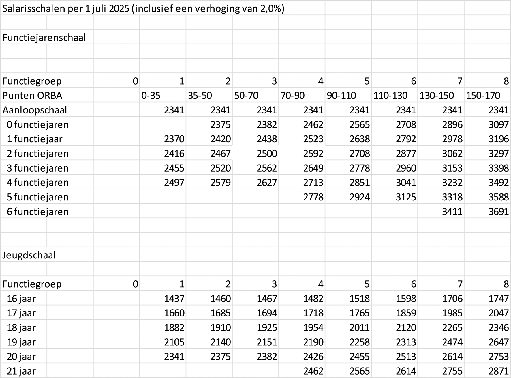 Het maandsalaris als geregeld in bijlage II van deze cao; |