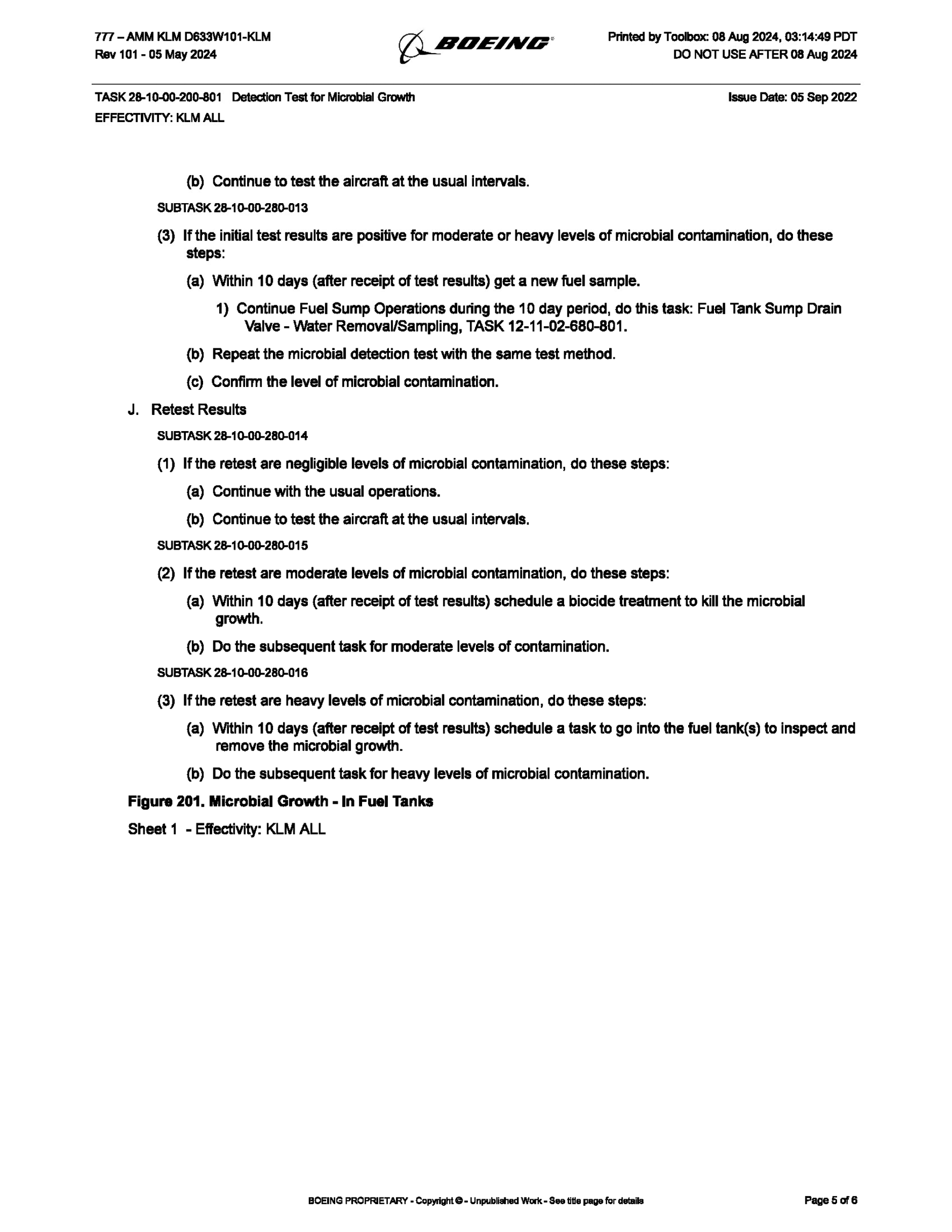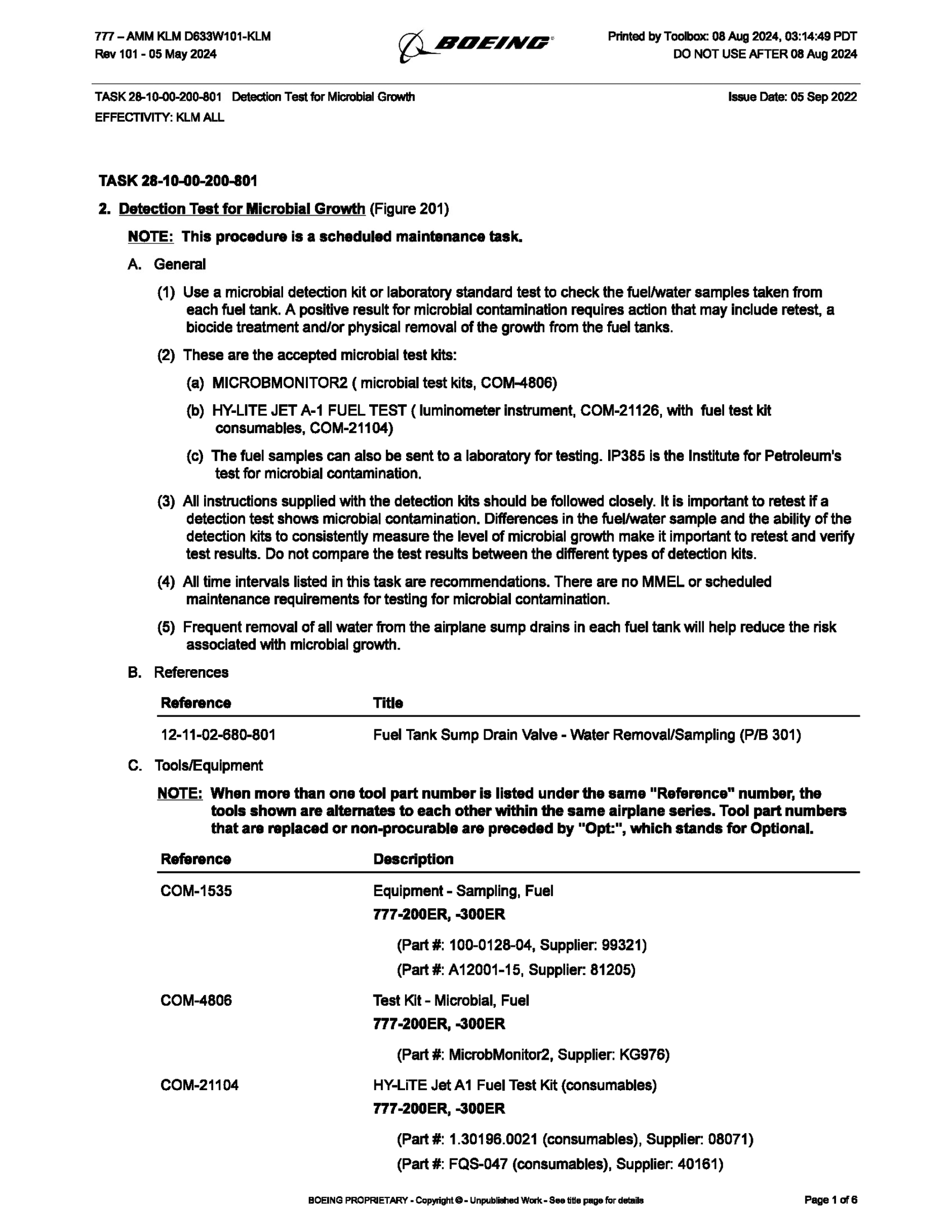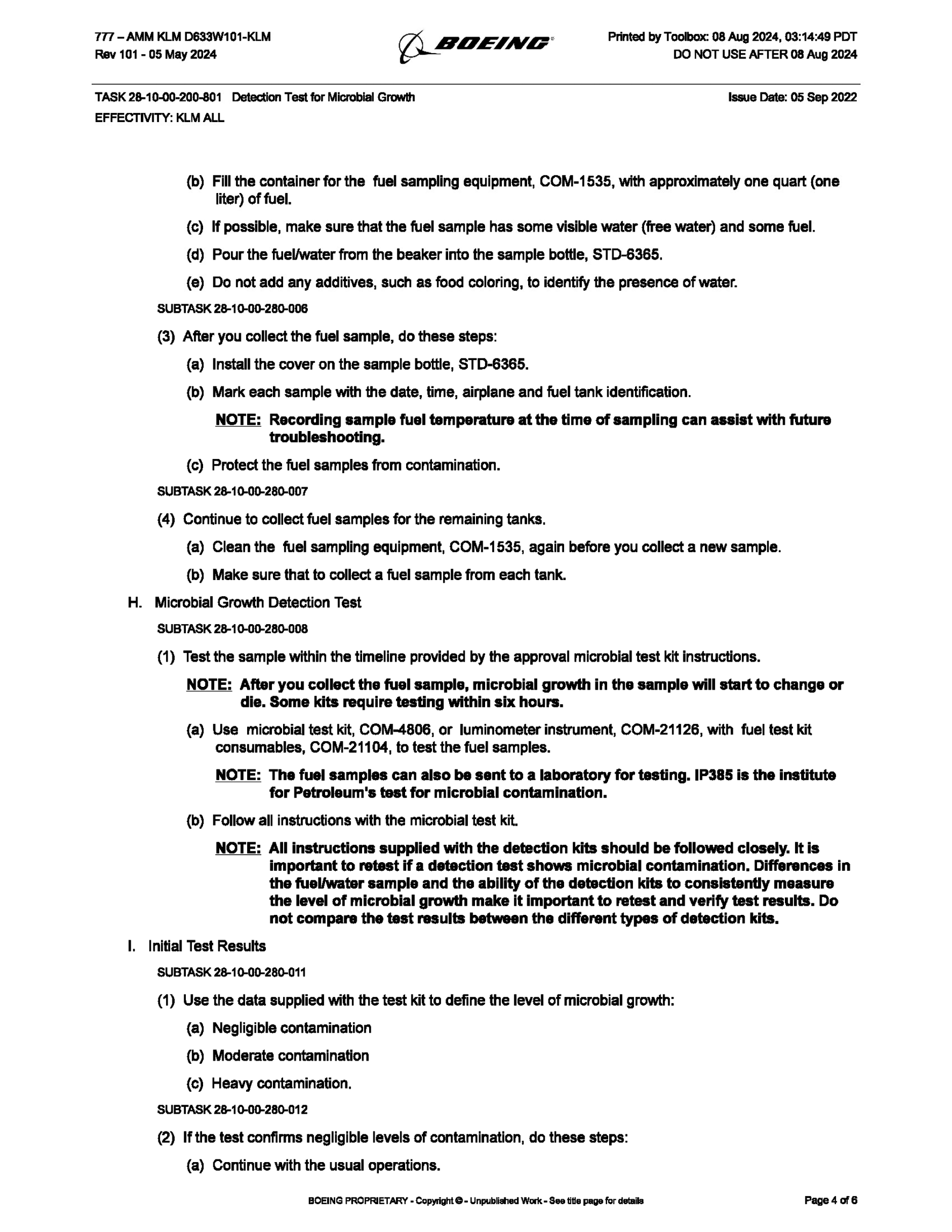 De Boeing procedure schrijft voor dat water uit de tanks wordt verwijderd. Voor dit afvalwater zijn EURAL voorwaarden van toepassing en dit moet op een milieu veilige manier worden verwerkt. De afvalbehandeling moet de concentratie borium verder reduceren voor lozing naar het oppervlaktewater.
