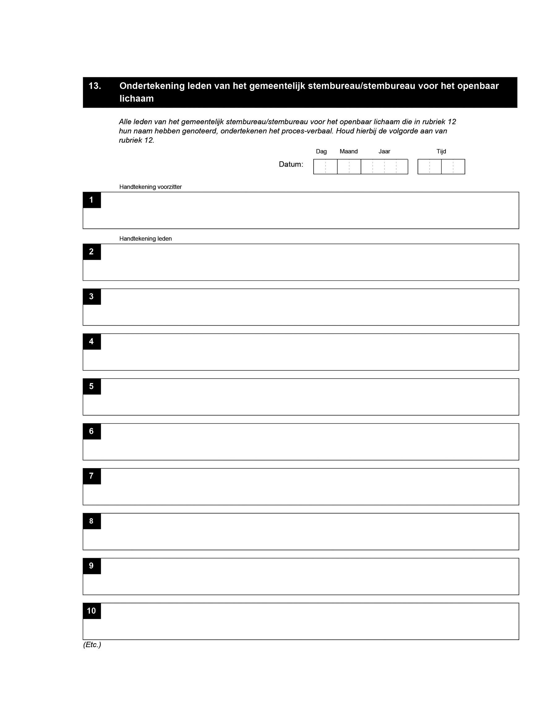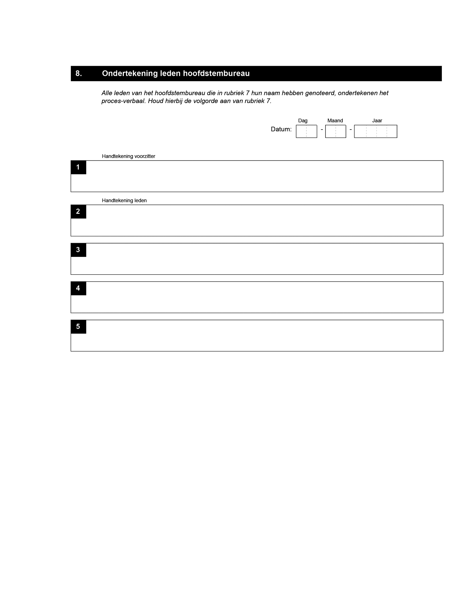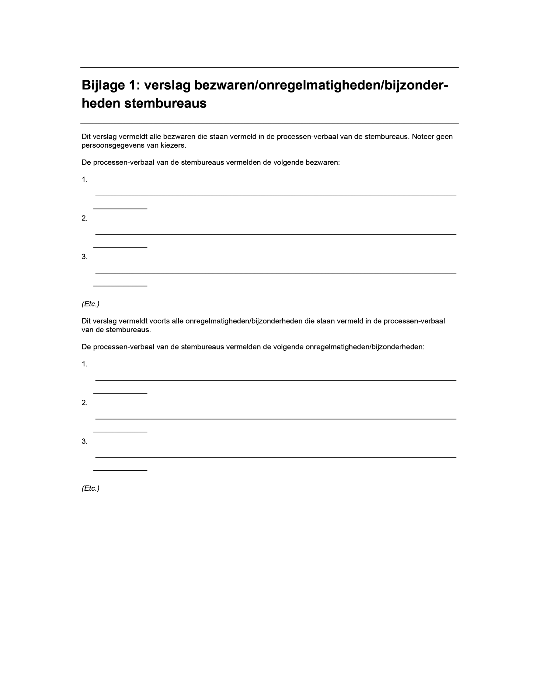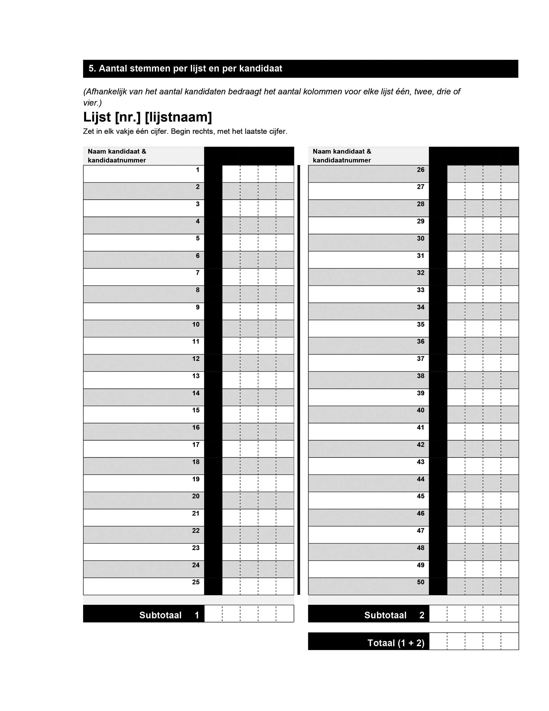 Bij het model voor het hoofdstembureau is bij rubriek 4 het vak voor de uitkomst van de controle toegevoegd. Er moet hier worden aangekruist of er wel of geen verschillen zijn geconstateerd na het uitvoeren van de controle. Indien er verschillen zijn geconstateerd moet er contact worden opgenomen met de Kiesraad. De uitkomst van het contact met de Kiesraad moet worden genoteerd op het proces-verbaal. Hierna moet worden aangekruist of er voor de invoer van de uitslagen van de gemeentelijk stembureaus gebruik is gemaakt van bestanden die zijn uitgewisseld via het platform ‘Teluitslagen’. Indien hier geen gebruik van is gemaakt moet worden genoteerd voor welke gemeenten de resultaten van de papieren processen-verbaal twee keer handmatig zijn ingevoerd in de uitslagensoftware. Vervolgens moet worden genoteerd of gemeentelijk stembureaus verschillen hebben geconstateerd bij de uitvoering van de controle, in welke gemeenten dit geconstateerd is en wat de gemeentelijk stembureaus hierover hebben opgeschreven.
