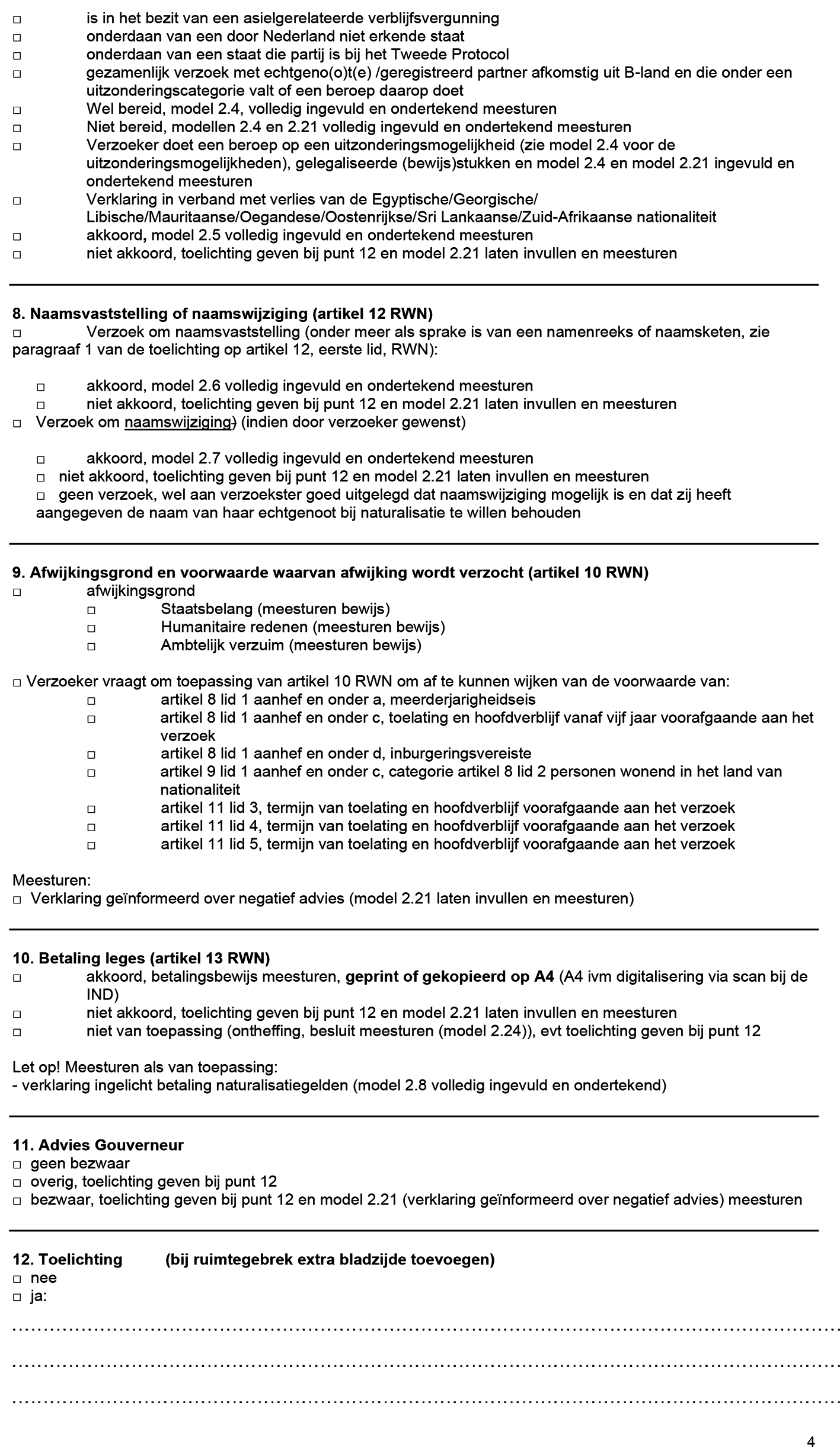 Op 1 juli 2024 is WBN 2024/1 in werking getreden. In WBN 2024/1 is binnen model 2.22 van de HRWN-NL de tekst onder kopje 8 ‘naamsvaststelling of naamswijziging (artikel 12 RWN)’ aangepast. Met dit WBN is model 2.22 HRWN-A in lijn gebracht hiermee.
