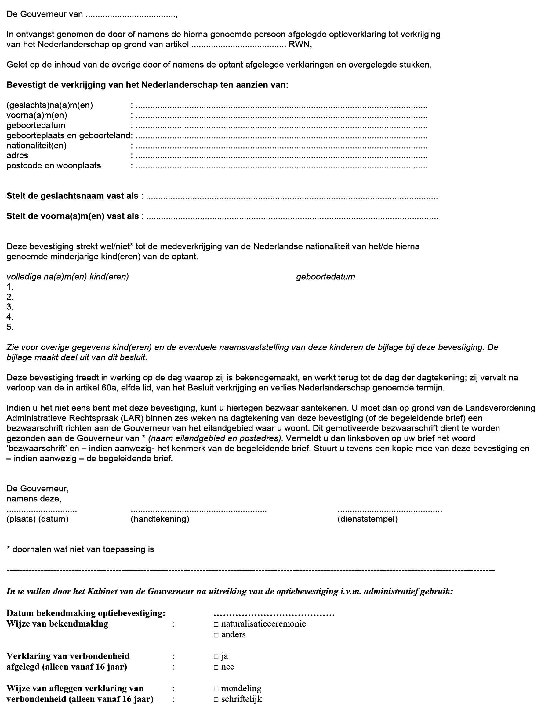 Bevestiging van de verkrijging van het Nederlanderschap door optie (artikel 6, derde lid, RWN)