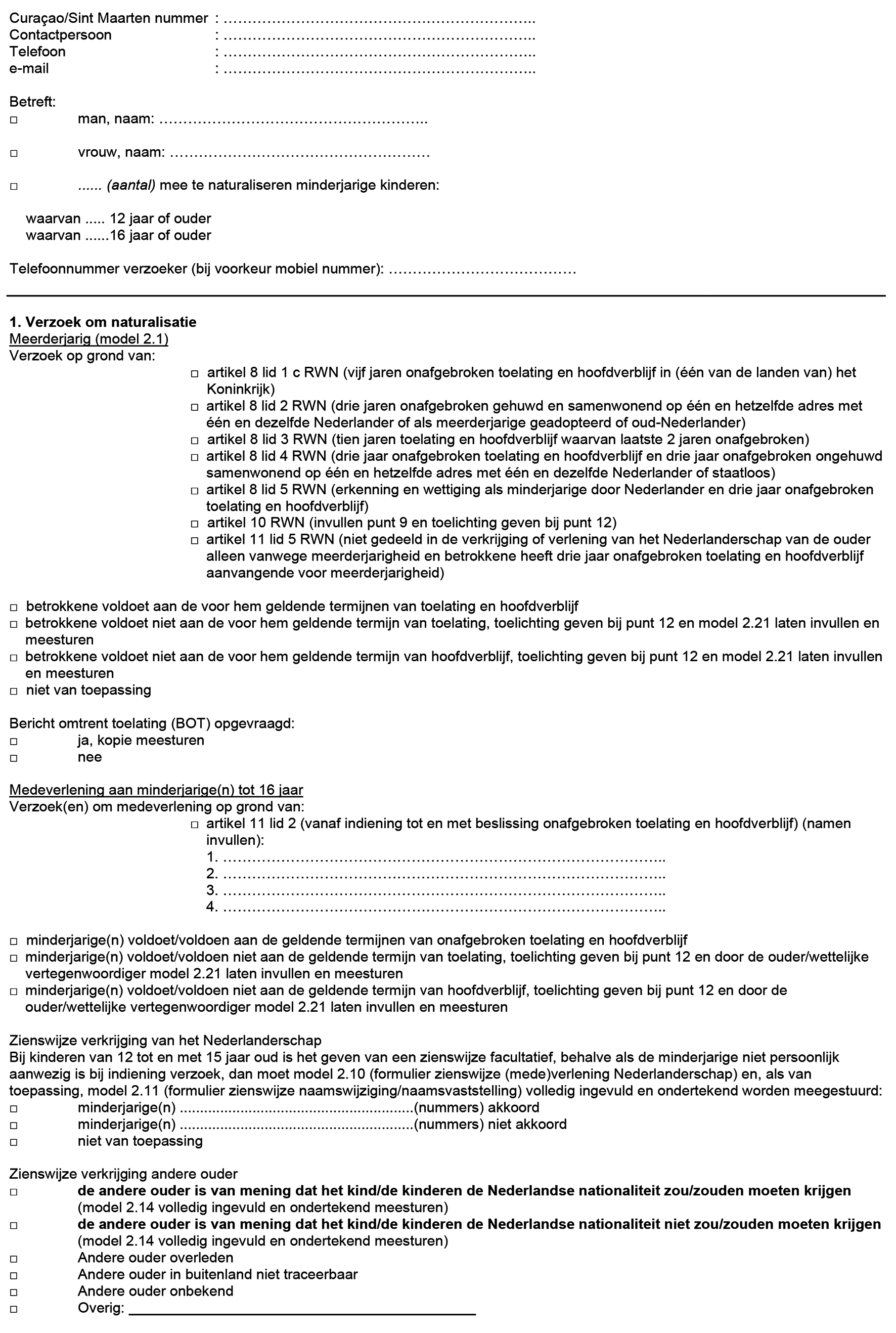 De Handleiding voor de toepassing van de Rijkswet op het Nederlanderschap 2003 toegespitst op het gebruik in Curaçao en Sint Maarten wordt als volgt gewijzigd: