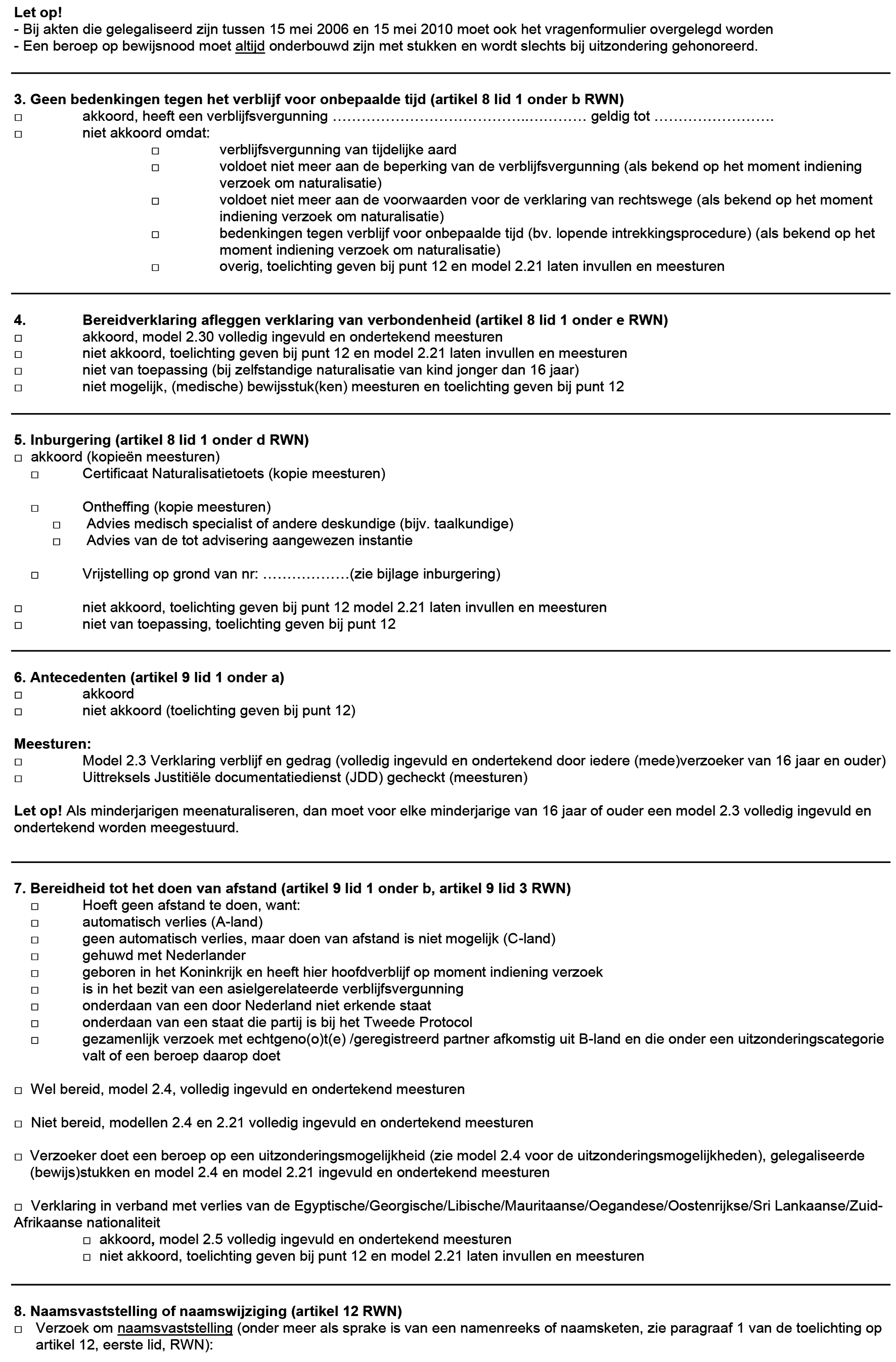 Op 1 juli 2024 is WBN 2024/1 in werking getreden. In WBN 2024/1 is binnen model 2.22 van de HRWN-NL de tekst onder kopje 8 ‘naamsvaststelling of naamswijziging (artikel 12 RWN)’ aangepast. Met dit WBN is model 2.22 HRWN-CM in lijn gebracht hiermee.