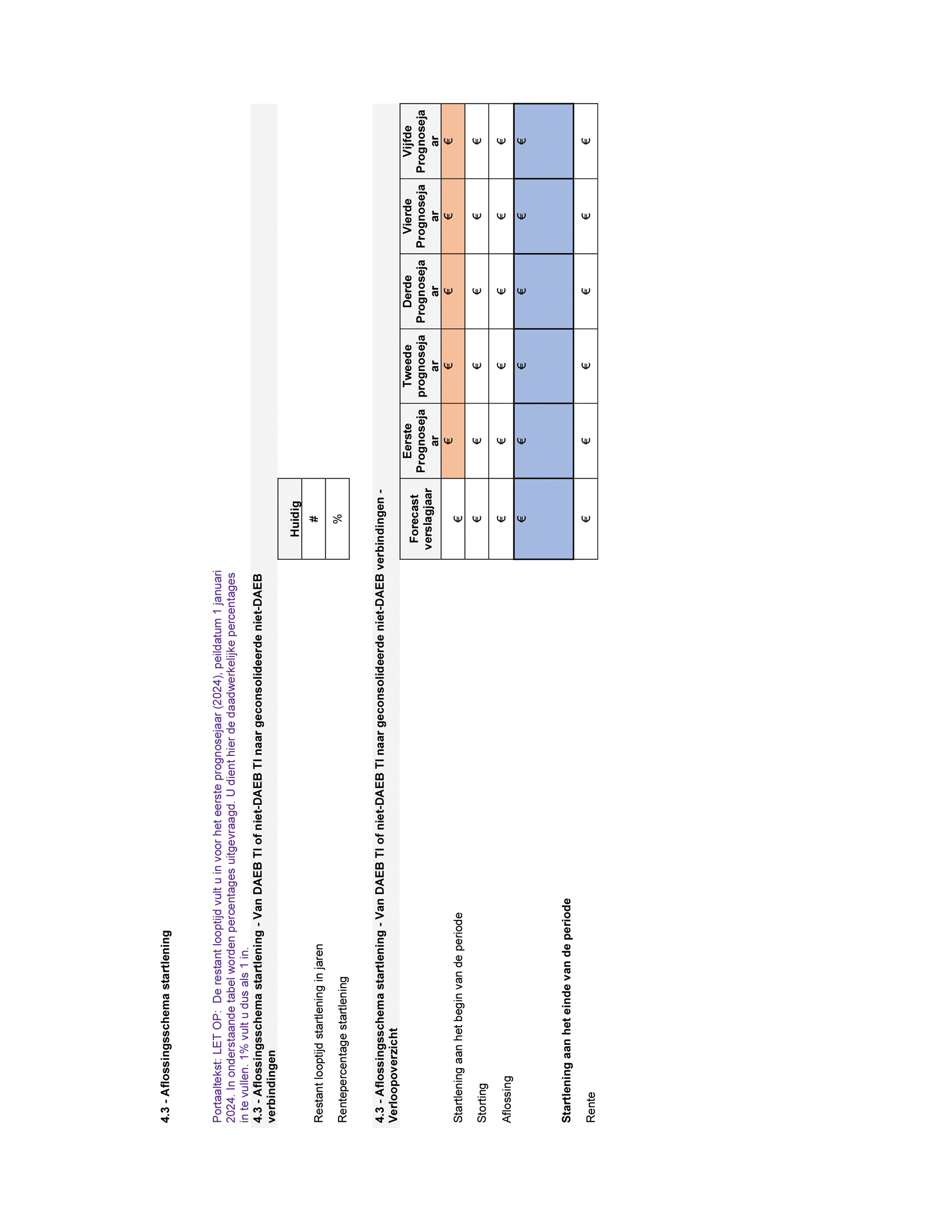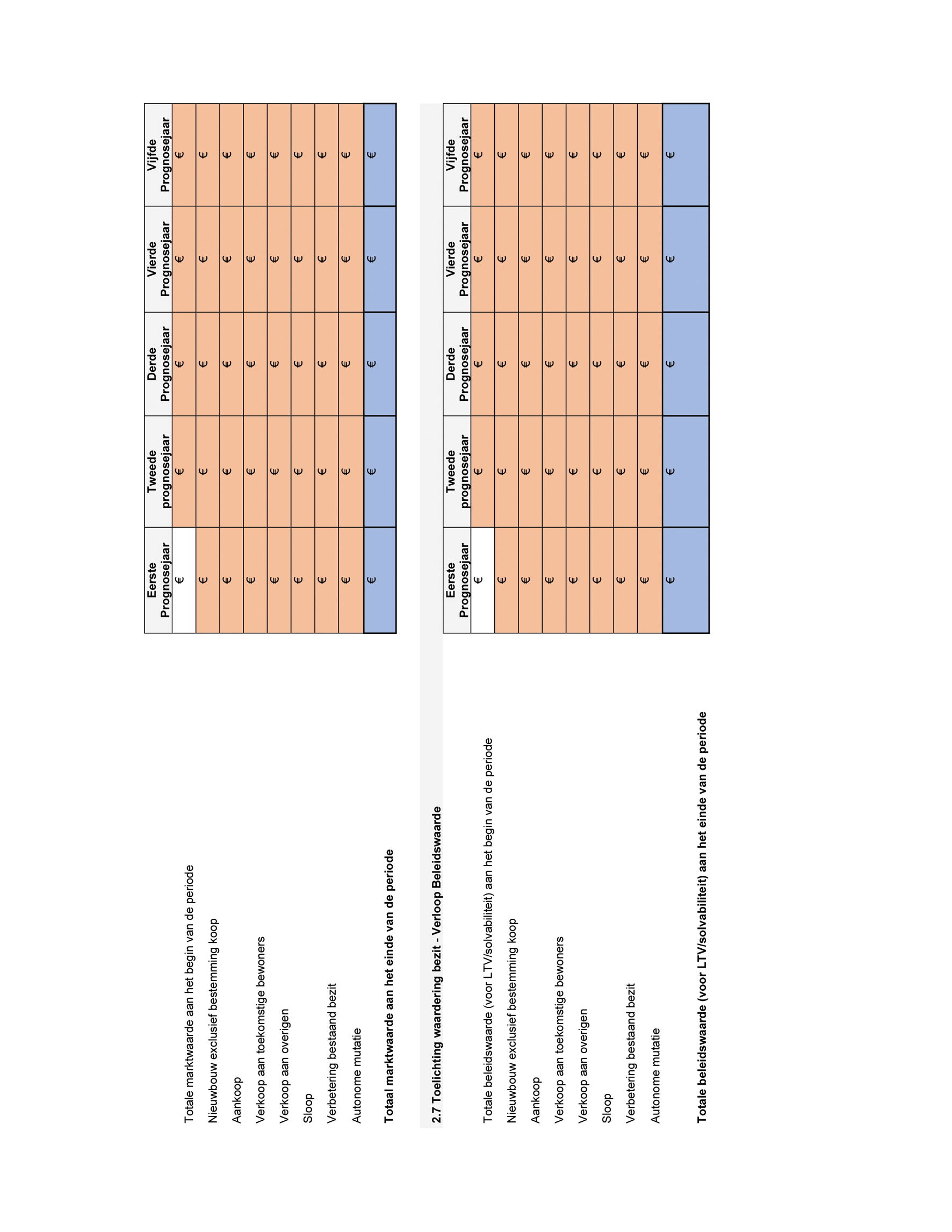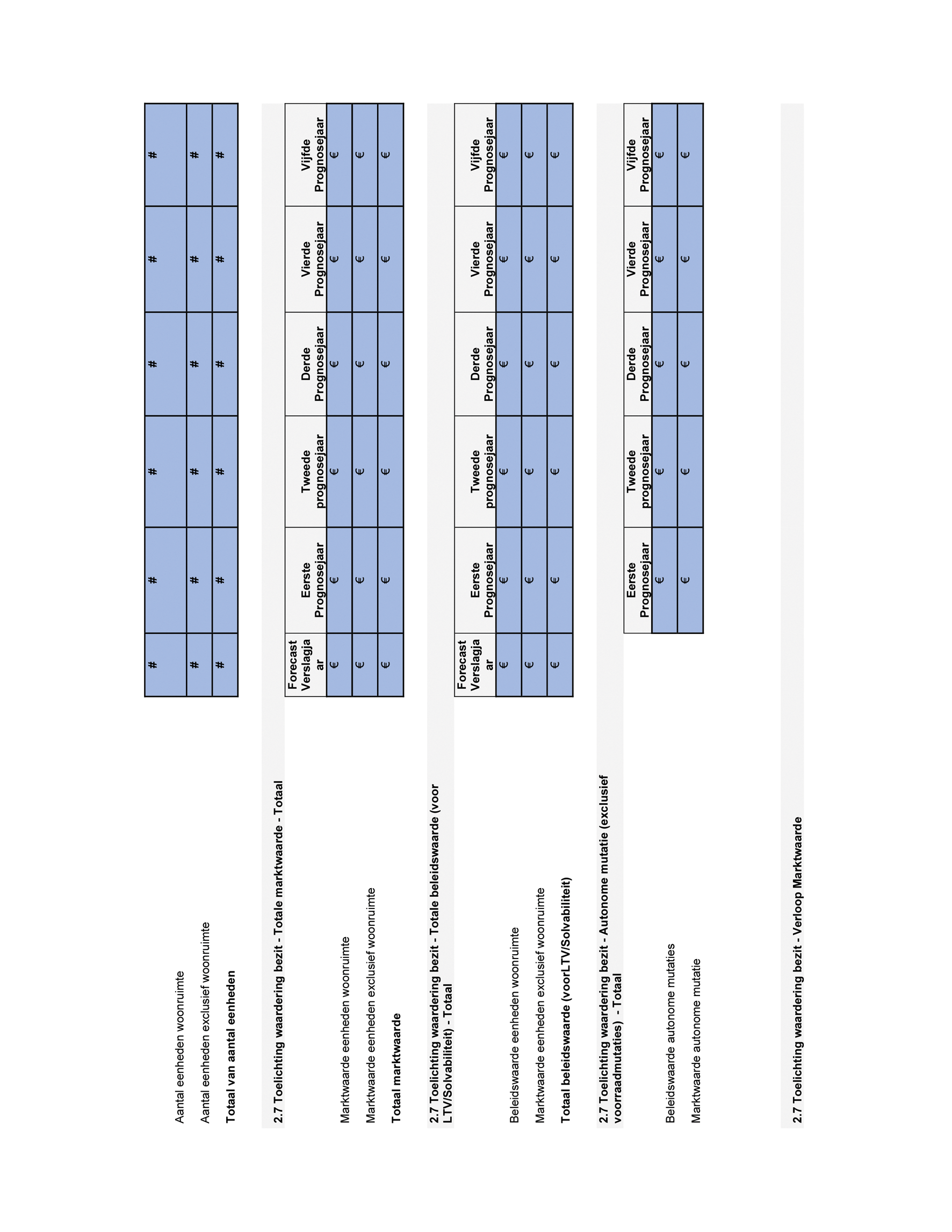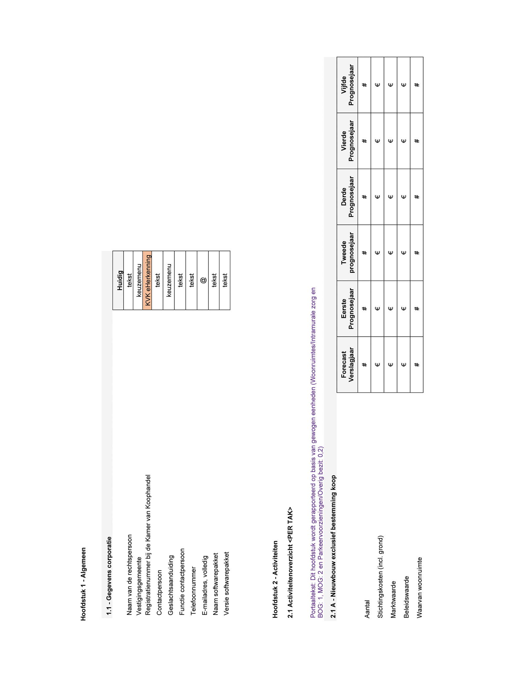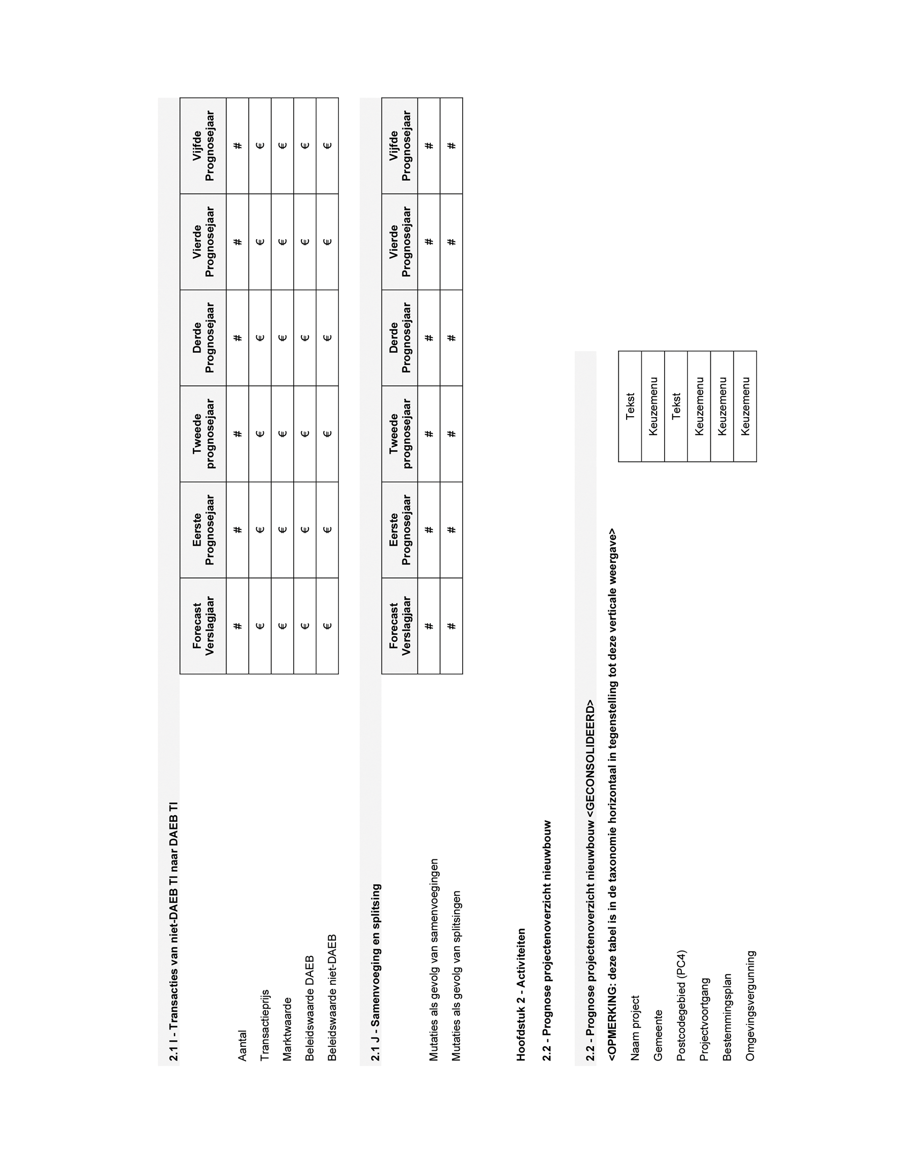 In paragraaf 2.1 H en I wordt, om het verloop van de beleidswaarde aan te sluiten met de dVi gegevensuitvraag, in beide onderdelen de regel ‘Beleidswaarde DAEB’ en de regel ‘Beleidswaarde niet-DAEB’ toegevoegd. Op deze manier kun je met de beleidswaarde ontwikkeling, als gevolg van de verantwoorde activiteiten in hoofdstuk 2.1, de waarde van t+1 bepalen.