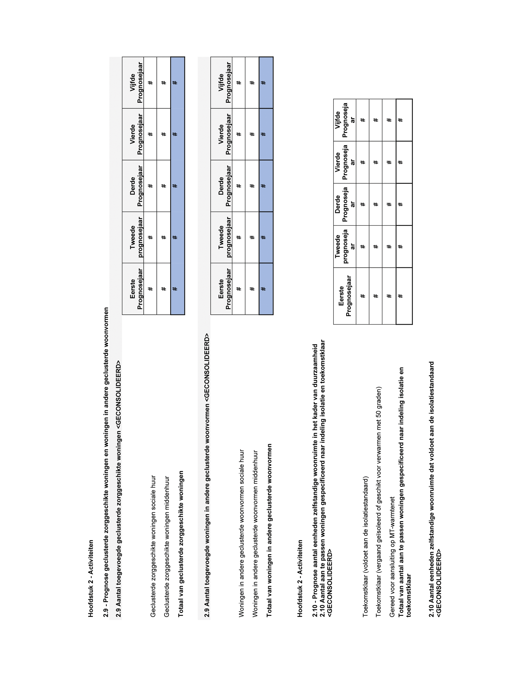 In paragraaf 2.9 wordt sinds 2023 in het kader van het Programma Wonen & Zorg uitgevraagd hoeveel geclusterde woonvormen en zorggeschikte woningen zullen worden toegevoegd aan de voorraad. Deze opvraag wordt niet inhoudelijk aangepast maar tekstueel consistent gemaakt met de opvraag in de dVi. Daarnaast zal de definitie op een aantal onderdelen worden verbeterd, gelijk aan de dVi.
