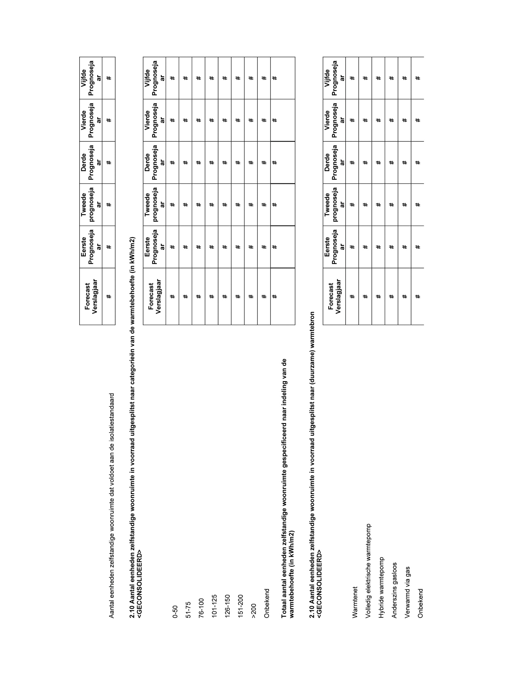 In paragraaf 2.10 zijn wijzigingen doorgevoerd naar aanleiding van de nieuwe NPA, waarin de afspraken m.b.t. sturing op de isolatiestandaard en het toekomstklaar maken van woningen zijn vervallen. De nieuwe afspraken hebben betrekking op de warmtebehoefte van woningen en monitoring van het aantal gerealiseerde hybride warmtepompen. De tabel m.b.t. toekomstklaar geïsoleerde woningen vervalt. Hiervoor in de plaats wordt een tabel toegevoegd waarin de warmtebehoefte in kWh/m2 van woningen wordt opgevraagd, verdeeld over zeven categorieën.