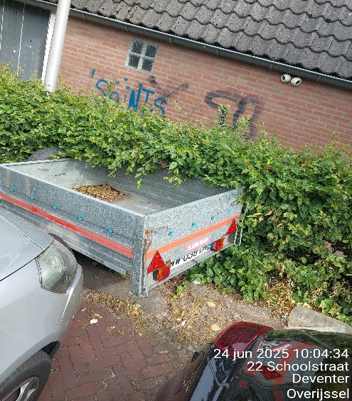 Reden hiervoor is dat wij op 26 juni 2025, op de openbare parkeerplaats aan de Halvestraat, te Deventer het volgende aanhanger/voertuig (wrak) hebben aangetroffen: