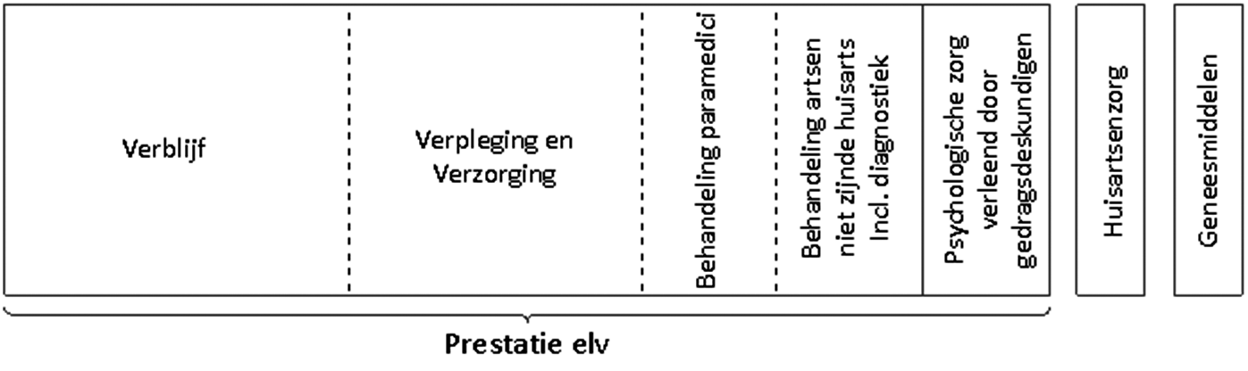 In artikel 4 staat aangegeven welke componenten deel uitmaken van de prestaties voor eerstelijnsverblijf. Hieronder is schematisch weergegeven uit welke componenten de prestaties zijn opgebouwd.