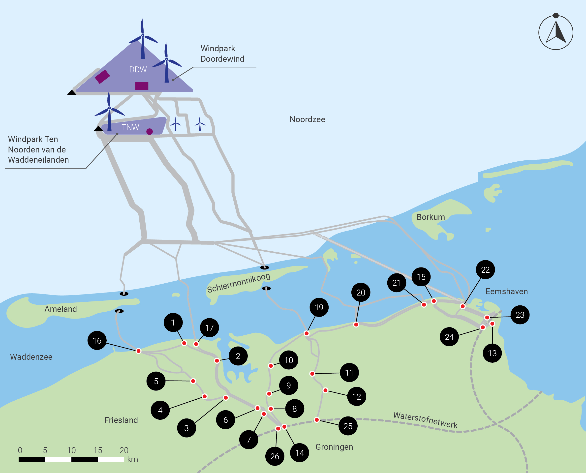 Ten Noorden van de Waddeneilanden (hierna: TNW) aan te sluiten met waterstof op het Waterstofnetwerk Nederland en/of op het Waterstofnetwerk Groningen.