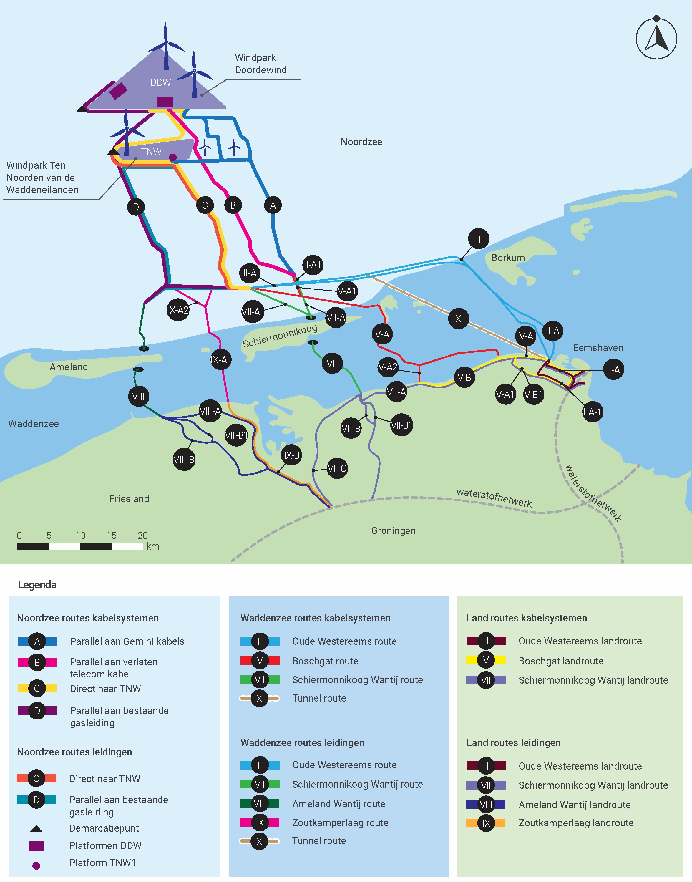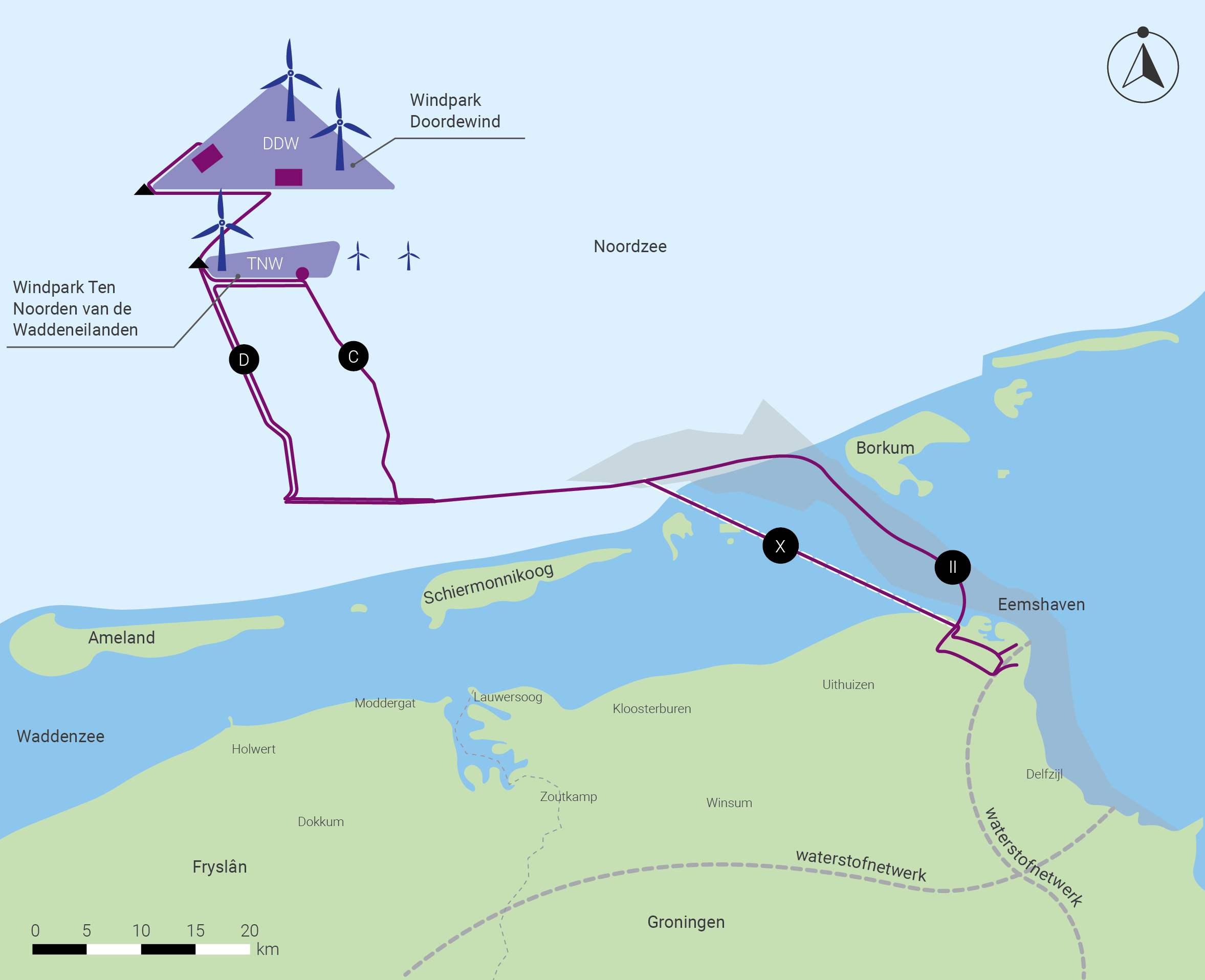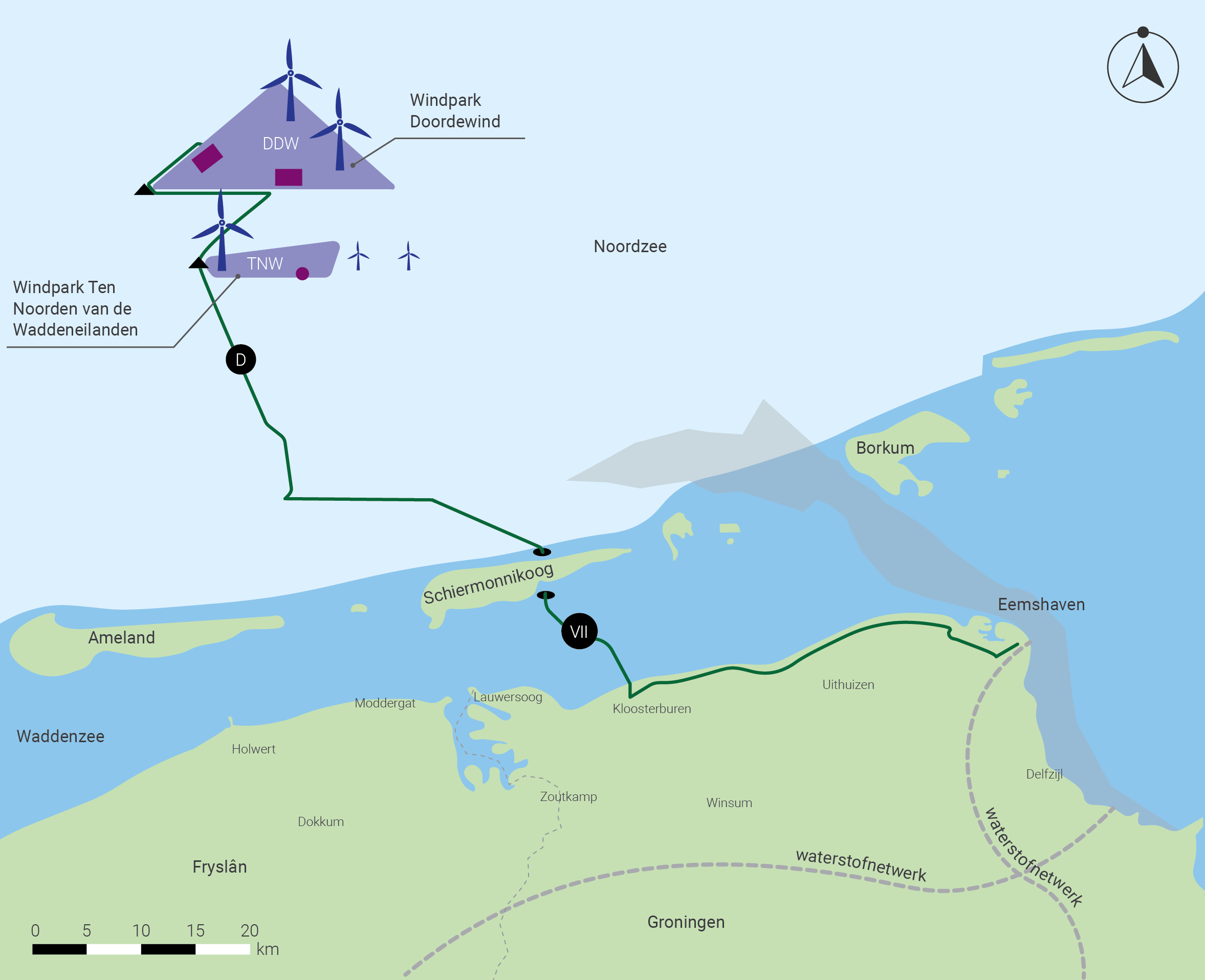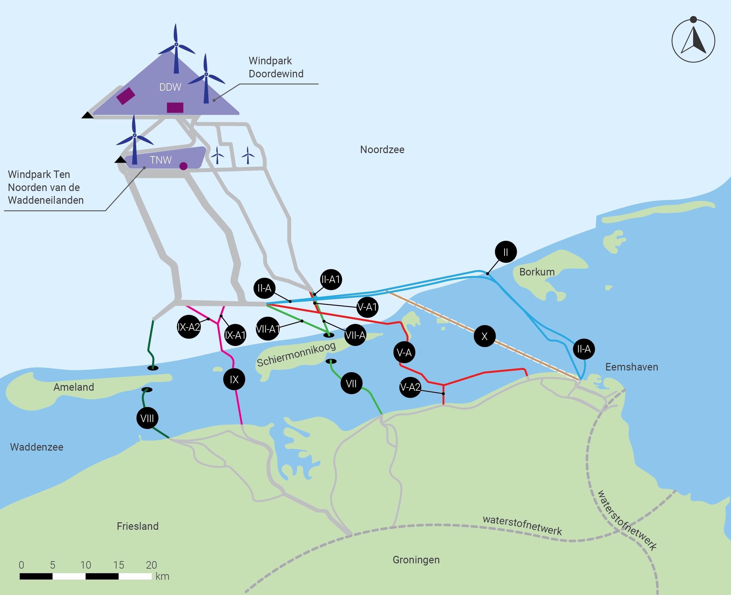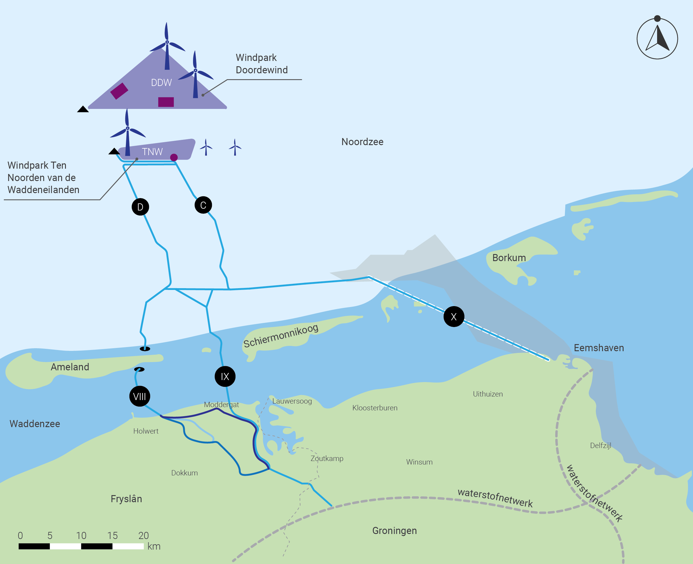 Het Rijk heeft de afgelopen jaren onderzocht waar op de Noordzee mogelijkheden zijn voor windenergiegebieden. Uit deze onderzoeken blijkt dat op de Noordzee, onder andere noordelijk van de Waddeneilanden, mogelijkheden zijn voor meerdere windenergiegebieden. Al deze windenergiegebieden samen kunnen veel duurzame energie opwekken. Niet alleen elektriciteit, maar ook de productie van waterstof op zee. Deze energie kan door middel van kabelverbindingen of waterstofleidingen getransporteerd worden via de Noordzee, de Waddenzee en het vasteland naar het landelijke hoogspanningsnet of het Waterstofnetwerk Nederland (WNN).