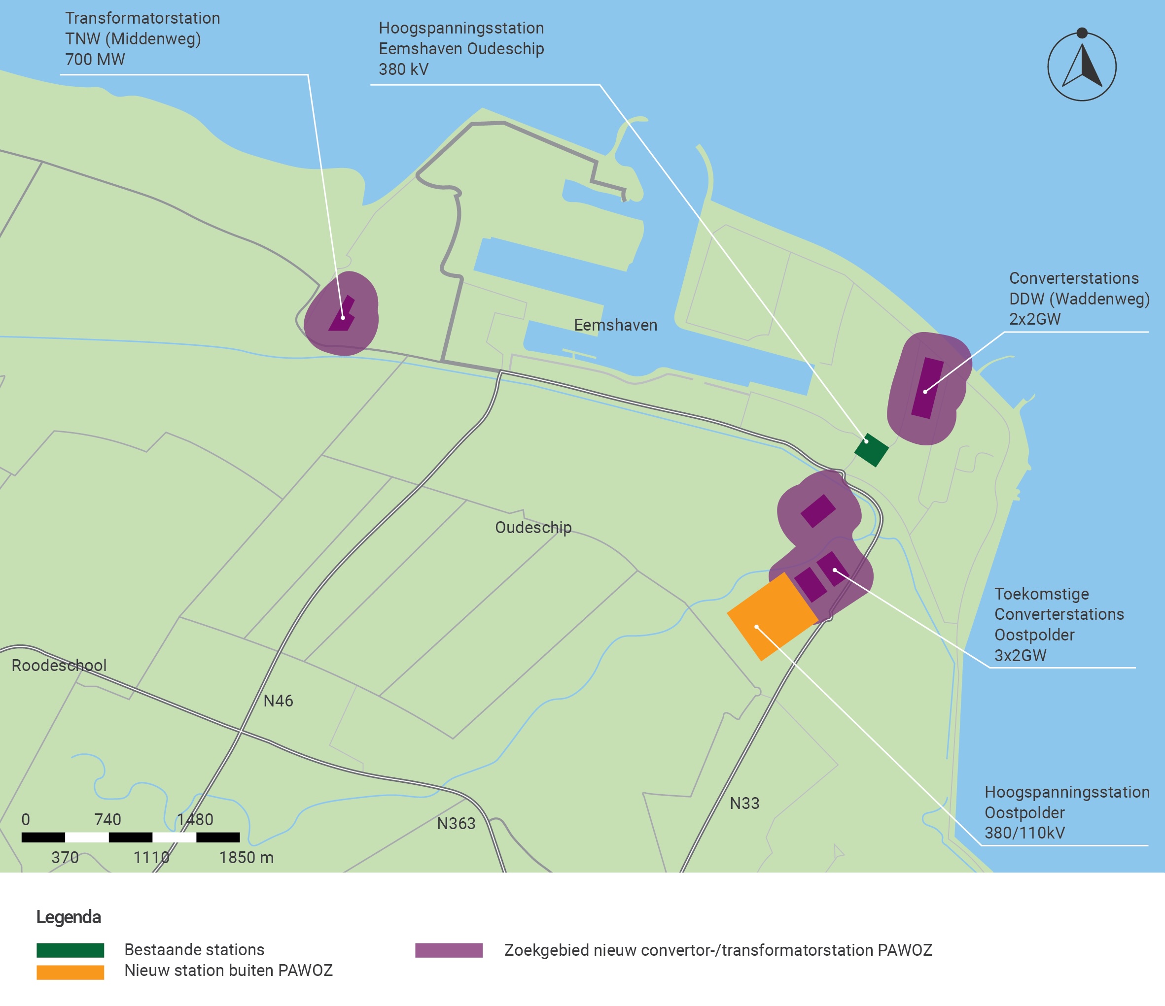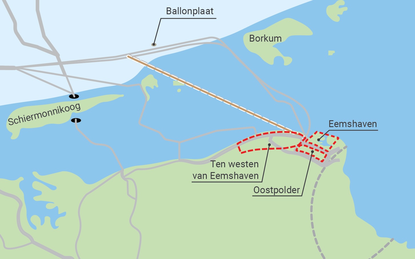 Uit het eerdere onderzoek Verkenning Aanlanding Wind op Zee (VAWOZ 2030)3 is gebleken dat de regio Eemshaven in Noord-Nederland van groot belang is om kabelverbindingen en waterstofleidingen aan land te laten komen. Daar is namelijk veel vraag naar de duurzame energie vanuit de regio en de industrie van windenergiegebieden. Daarnaast ligt in de regio Eemshaven een goed energienetwerk en is er ruimte in het huidige energiesysteem om daar voldoende energie te transporteren.