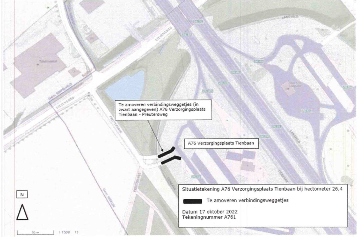 Het is dus nog steeds mogelijk om vanaf het lokale wegennet via verzorgingsplaats Tienbaan de rijksweg A76 op te rijden en ook om vanaf de rijksweg A76 via Tienbaan het lokale wegennet te bereiken. Het gebruik van verzorgingsplaats Tienbaan voor deze verkeersfunctie is onwenselijk, omdat een verzorgingsplaats is bedoeld als verblijfsfunctie en als zodanig is ontworpen en ingericht. Bovendien leidt de combinatie van de verblijfsfunctie en de huidige onwenselijke verkeersfunctie tot verkeersonveilige situaties.
