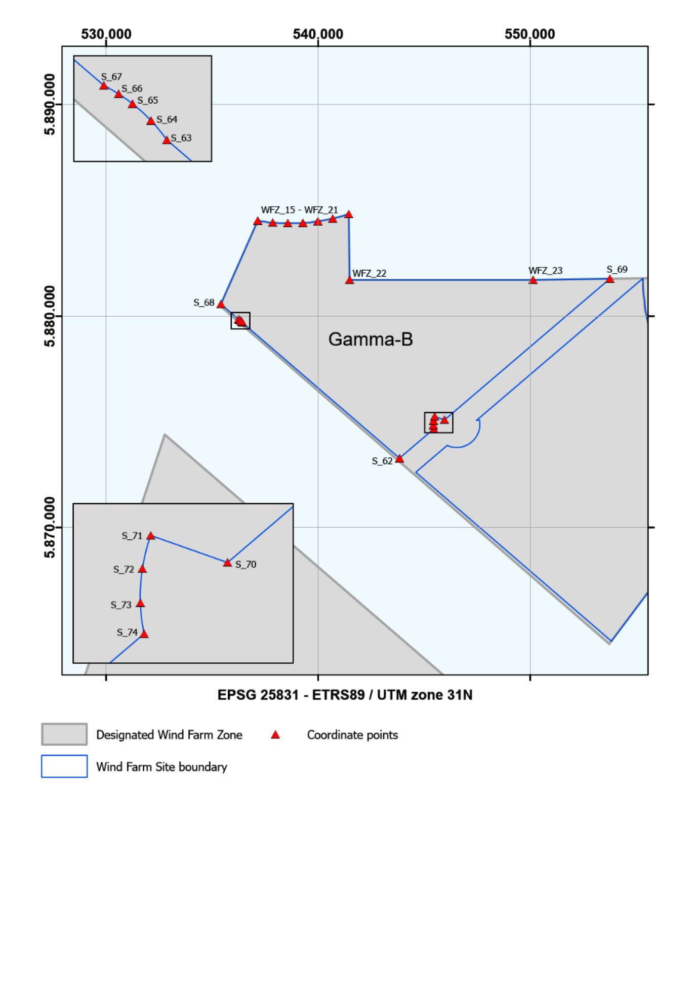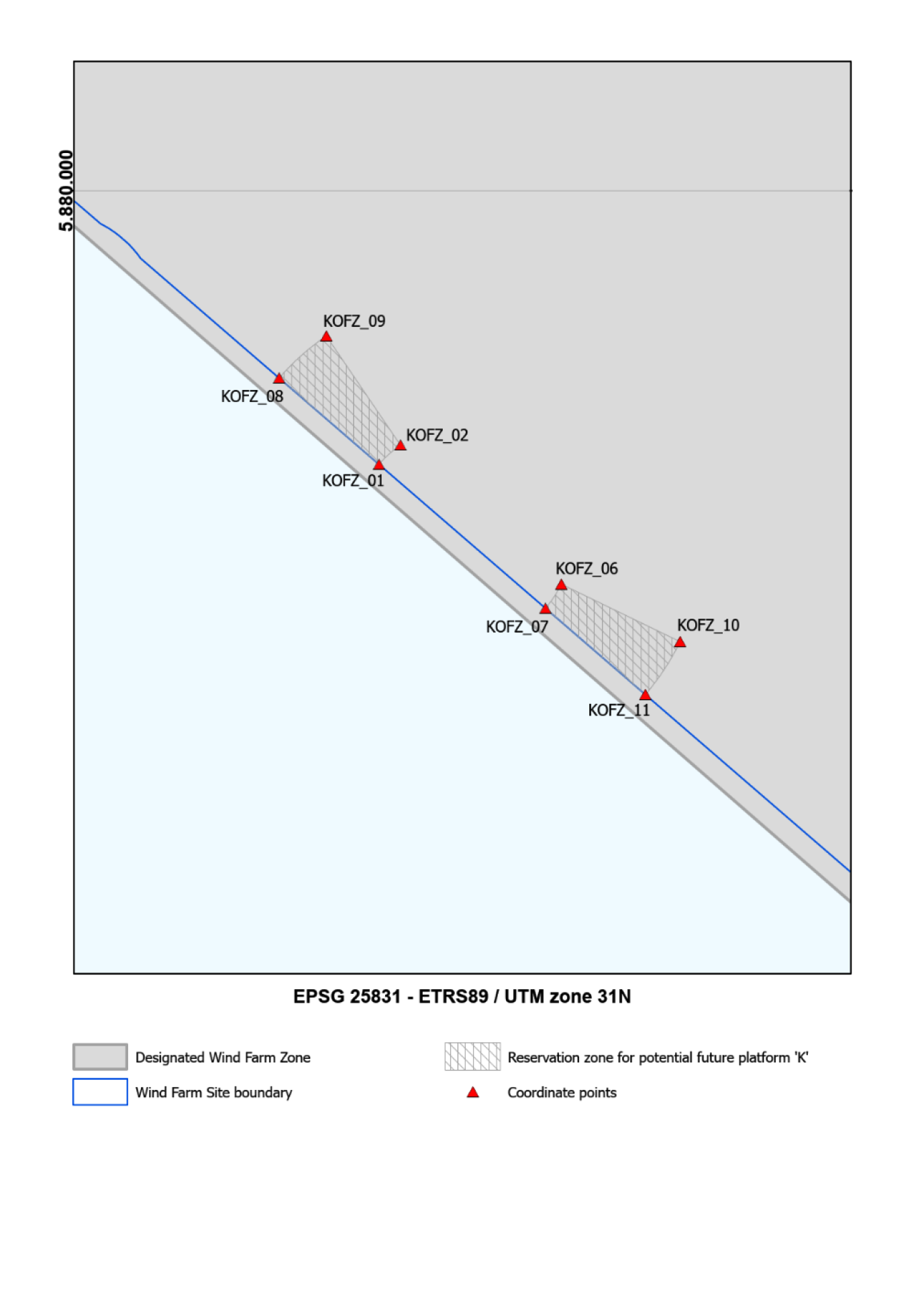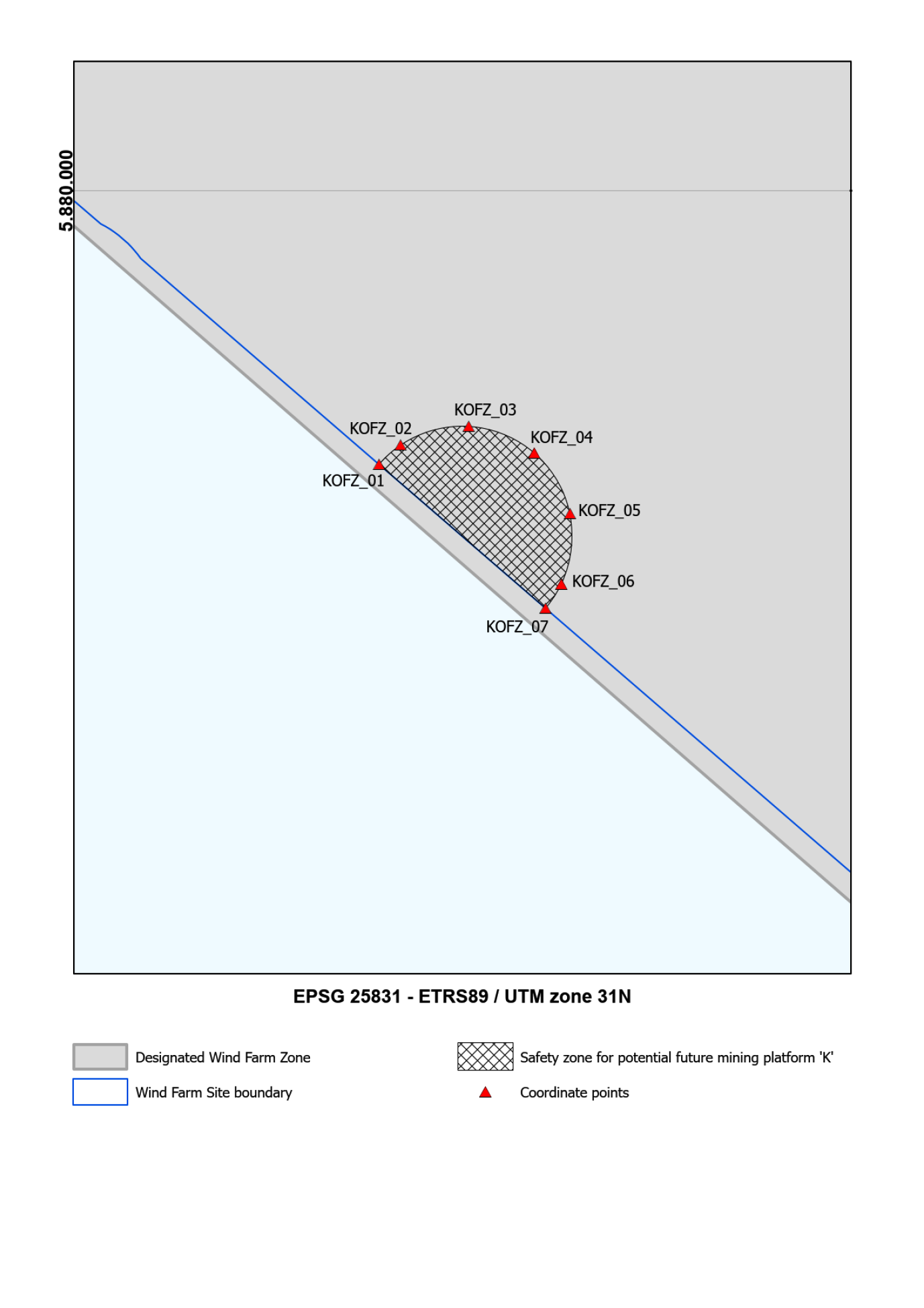 De lijst met coördinaten is overgenomen uit appendix 1, behorend bij: Periplus Archeomare in opdr. van RVO, IJmuiden Ver – An archaeological assessment of geophysical survey data, Report 20A03421A032-01, 2023.
