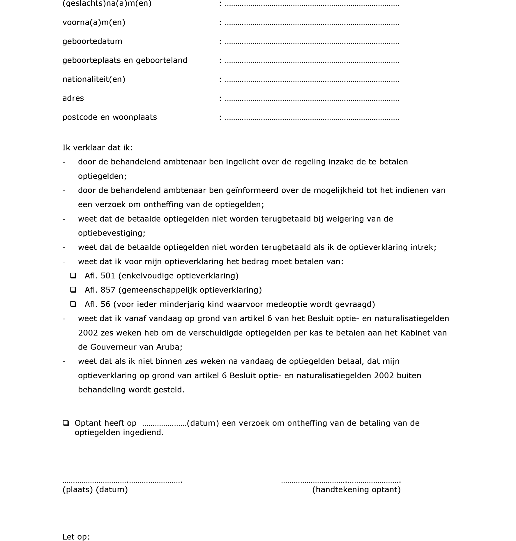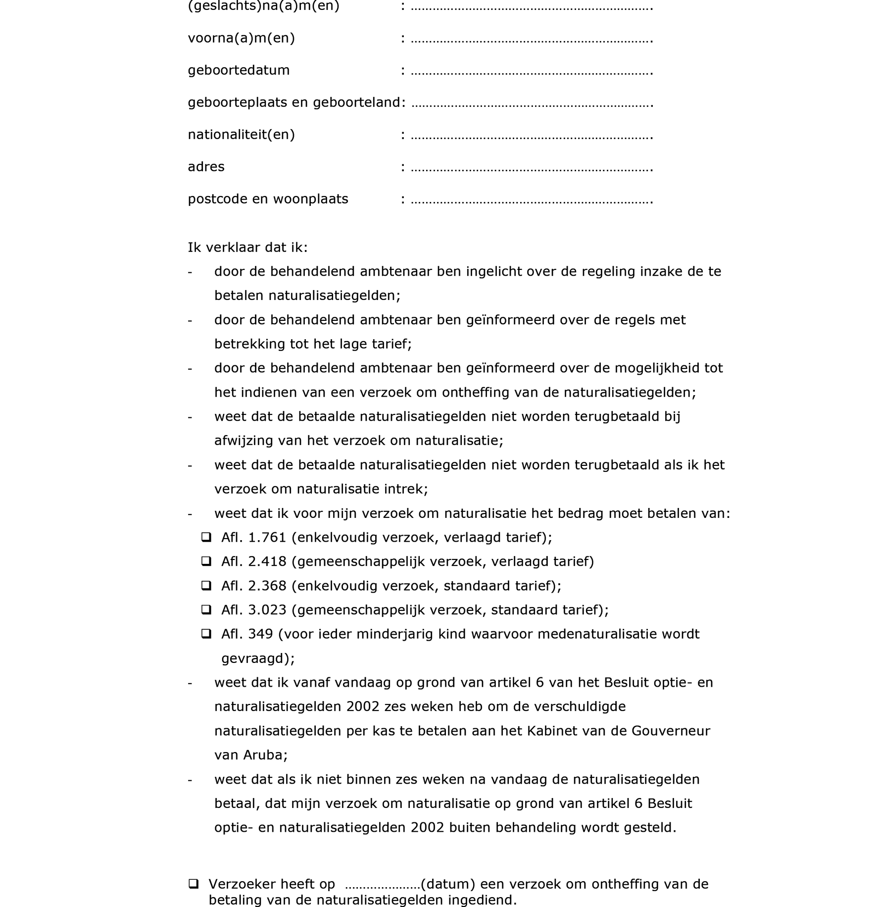 Model 2.8 HRWN-A: Verklaring ‘Ingelicht over betaling van naturalisatiegelden’ tevens