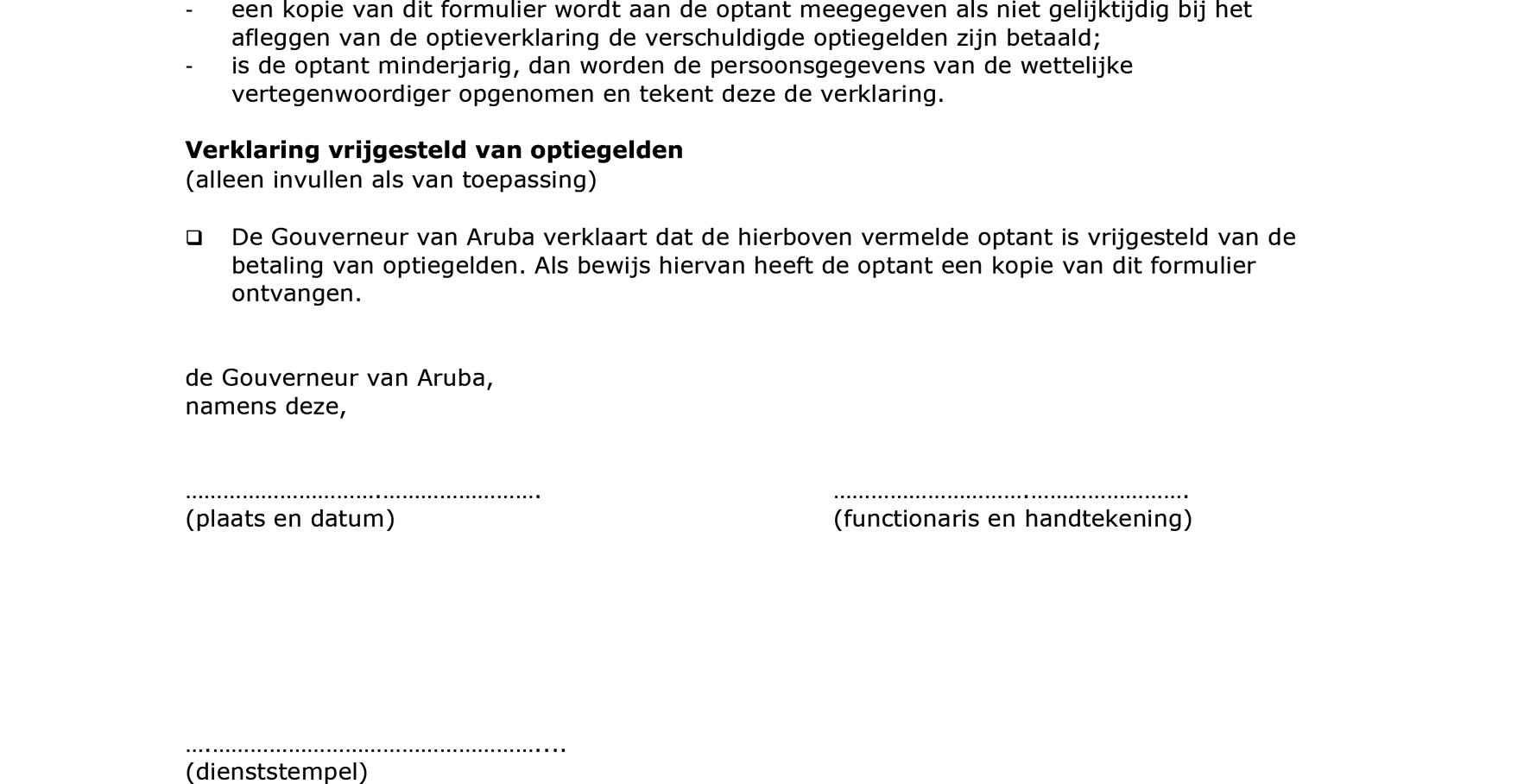 De Gouverneur hoeft de ontvangen optiegelden niet af te dragen aan Onze Minister. De behandeling van en de beslissing op de verklaring van optie liggen immers geheel in handen van de ontvangende instantie.