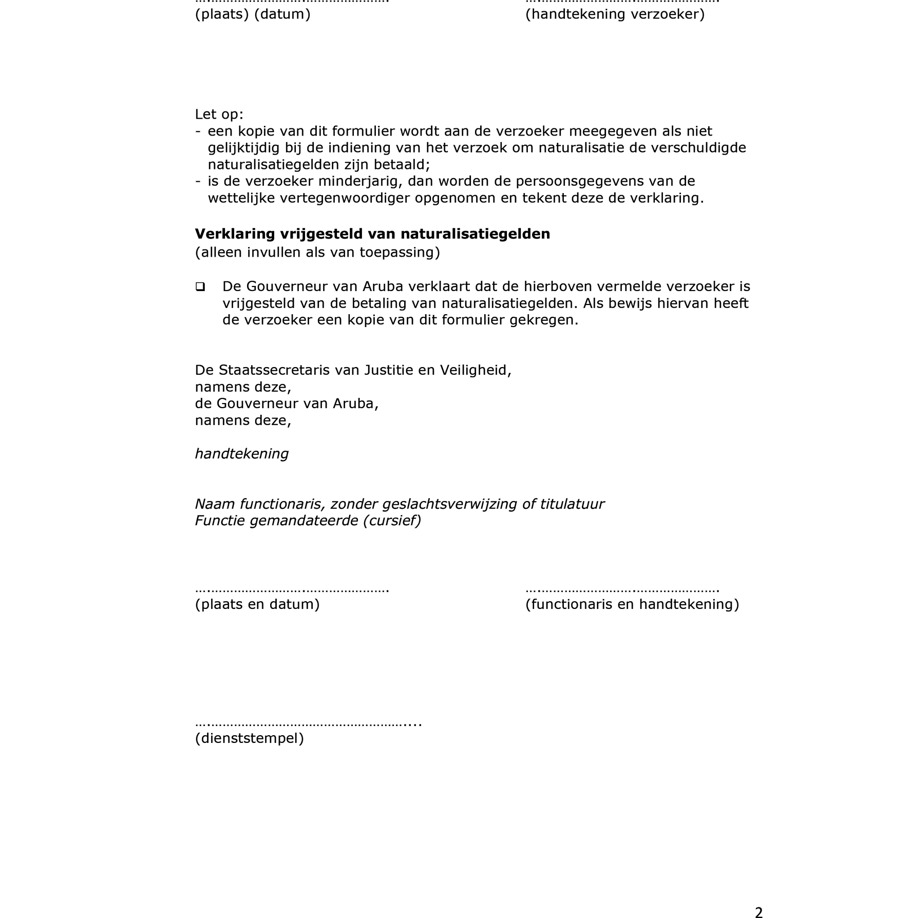 alsook: Verklaring vrijgesteld van naturalisatiegelden