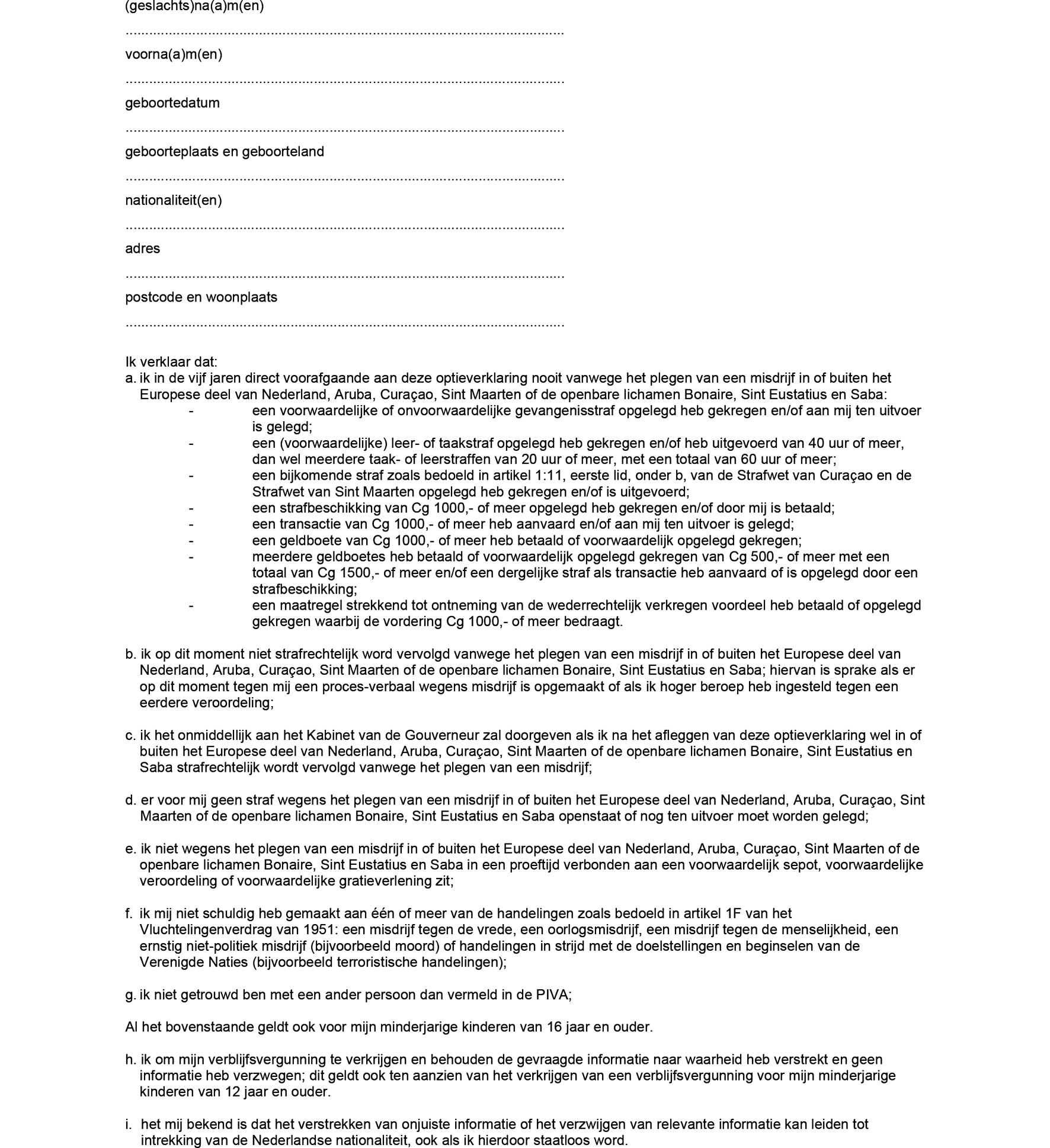 Let op! Het kan voorkomen dat bepaalde sancties die hierboven worden genoemd niet voorkomen in Curaçao en Sint Maarten. Dit betekent echter niet dat als tijdens de rehabilitatietermijn een dergelijke sanctie in Europees Nederland is opgelegd of ten uitvoer gelegd, deze niet zou worden tegengeworpen bij een verzoek om naturalisatie dan wel optieverklaring dat is ingediend of afgelegd in Curaçao en Sint Maarten. Ook in Europees Nederland opgelegde sancties tellen mee. Voor een nadere toelichting over deze sancties wordt verwezen naar de Nederlandse Handleiding.