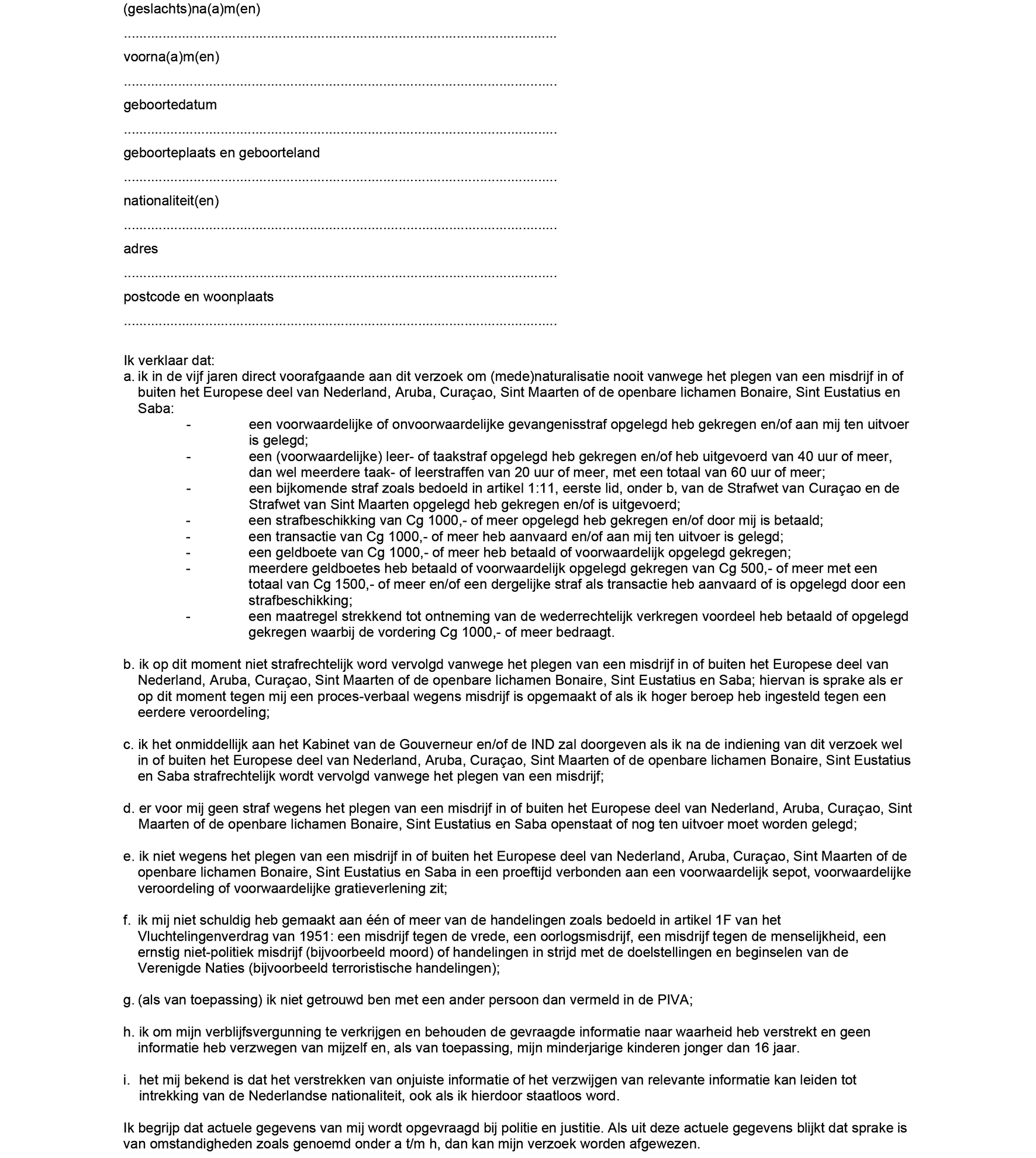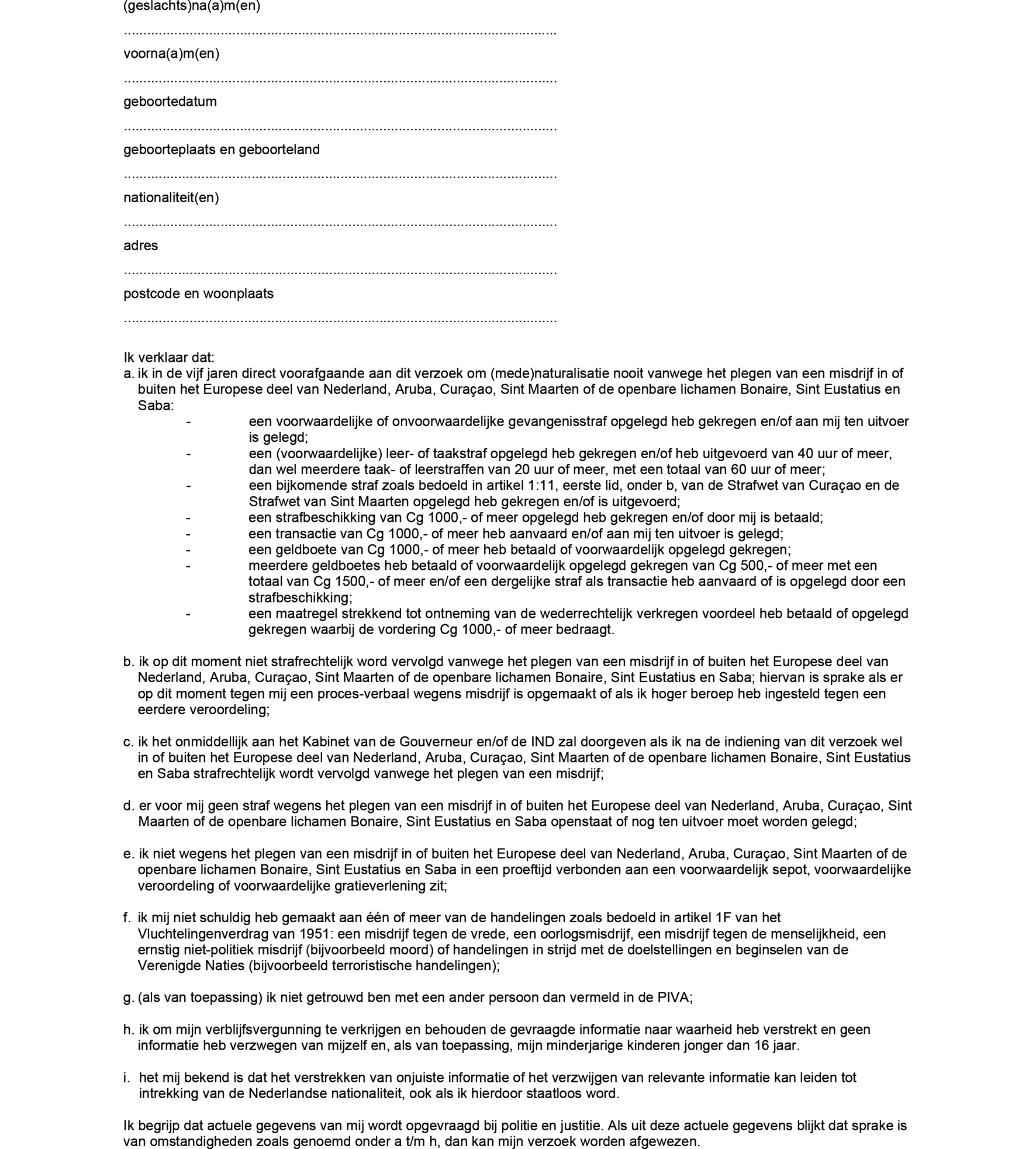 Model 2.3 HRWN-CM: Verklaring verblijf en gedrag (invullen (mede)verzoekers 16 jaar en ouder)