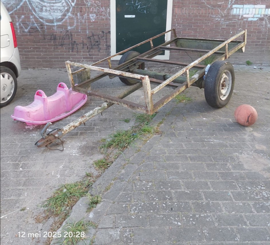 Reden hiervoor is dat wij op 12 mei, op de openbare parkeerplaats aan de Radstakeweg, te Deventer het volgende aanhanger/voertuig (wrak) hebben aangetroffen: