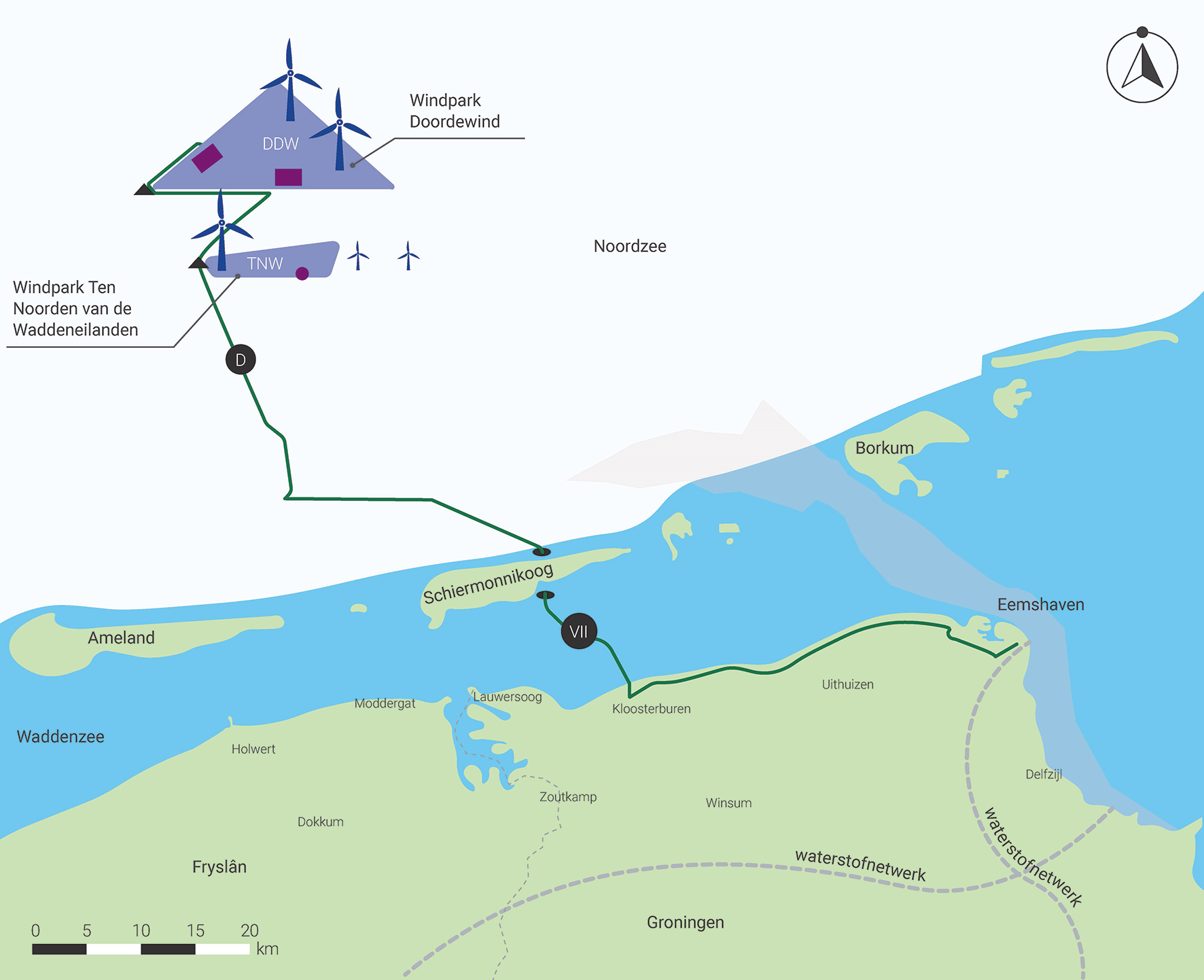 Het Ministerie van Klimaat en Groene Groei (hierna: KGG) en TenneT TSO B.V. (hierna TenneT) zijn van plan om het windenergiegebied Doordewind in het noorden van de Noordzee aan te sluiten op het landelijk elektriciteitsnet in de Eemshaven. In deze kennisgeving leest u wat het project inhoudt op hoofdlijnen, waarover u kunt meedenken en hoe u kunt reageren. In het Voornemen worden de plannen voor het project beschreven. Het Participatieplan beschrijft hoe de omgeving bij het energieproject wordt betrokken. Hiermee wordt de verkenningsfase gestart.