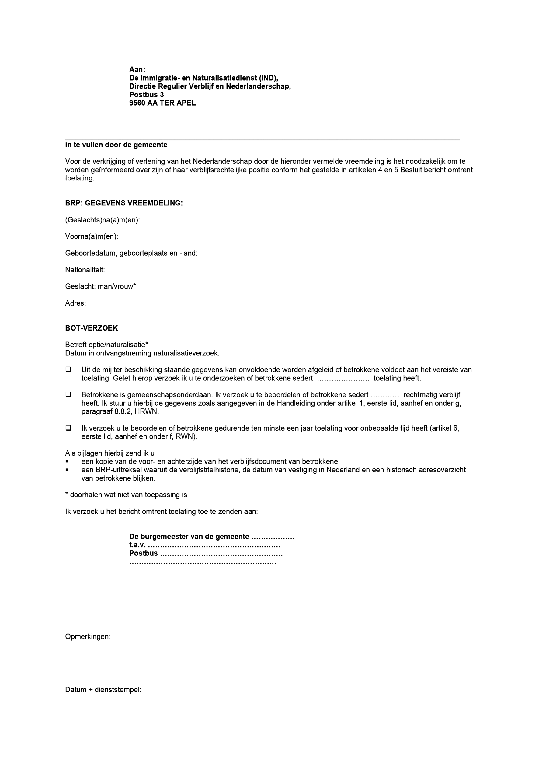 Gelet op de Rijkswet op het Nederlanderschap, het Besluit verkrijging en verlies Nederlanderschap, het Besluit Naturalisatietoets, het Besluit optie-en naturalisatiegelden 2002, de Regeling naturalisatietoets Nederland, de Regeling verkrijging en verlies Nederlanderschap;