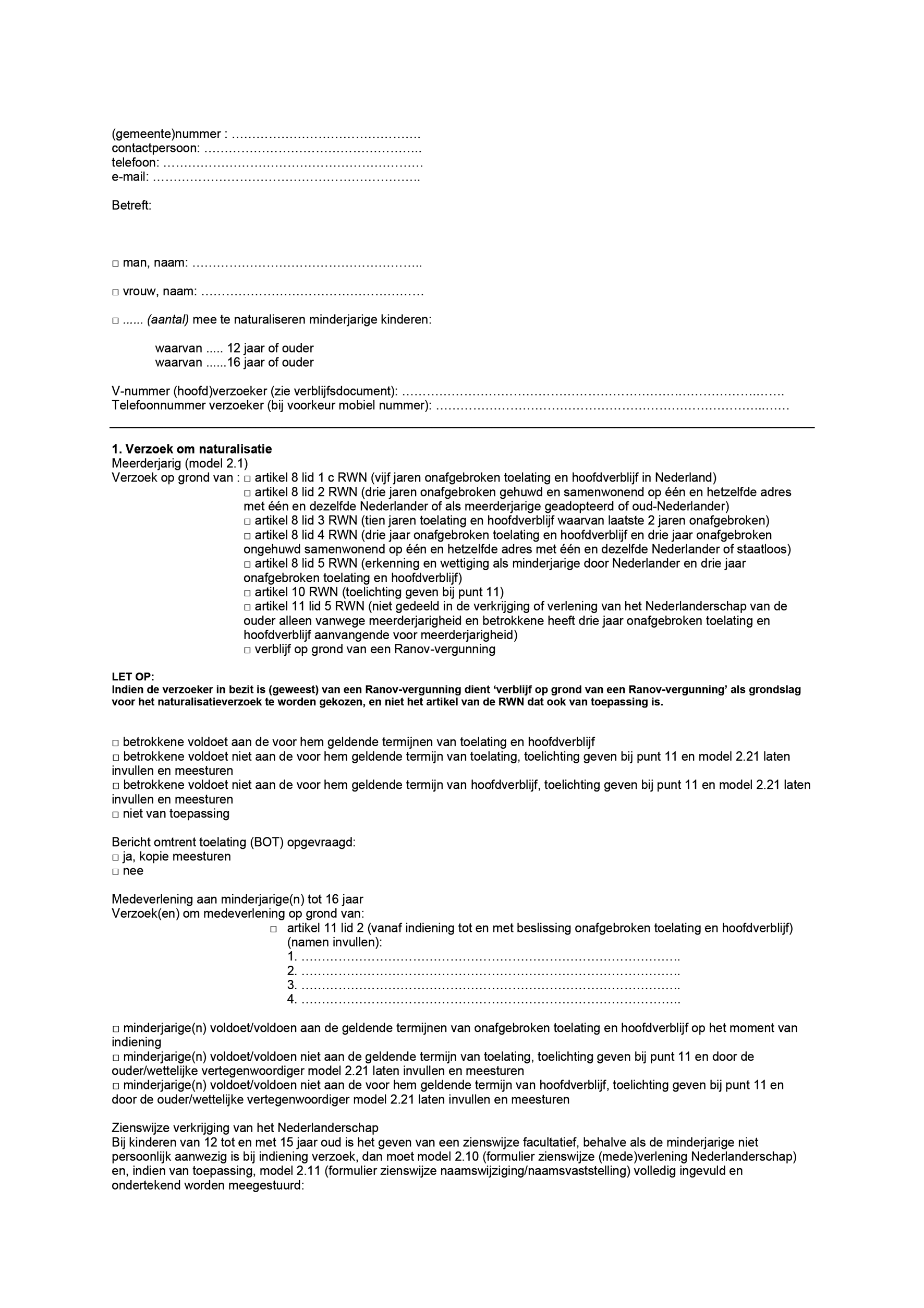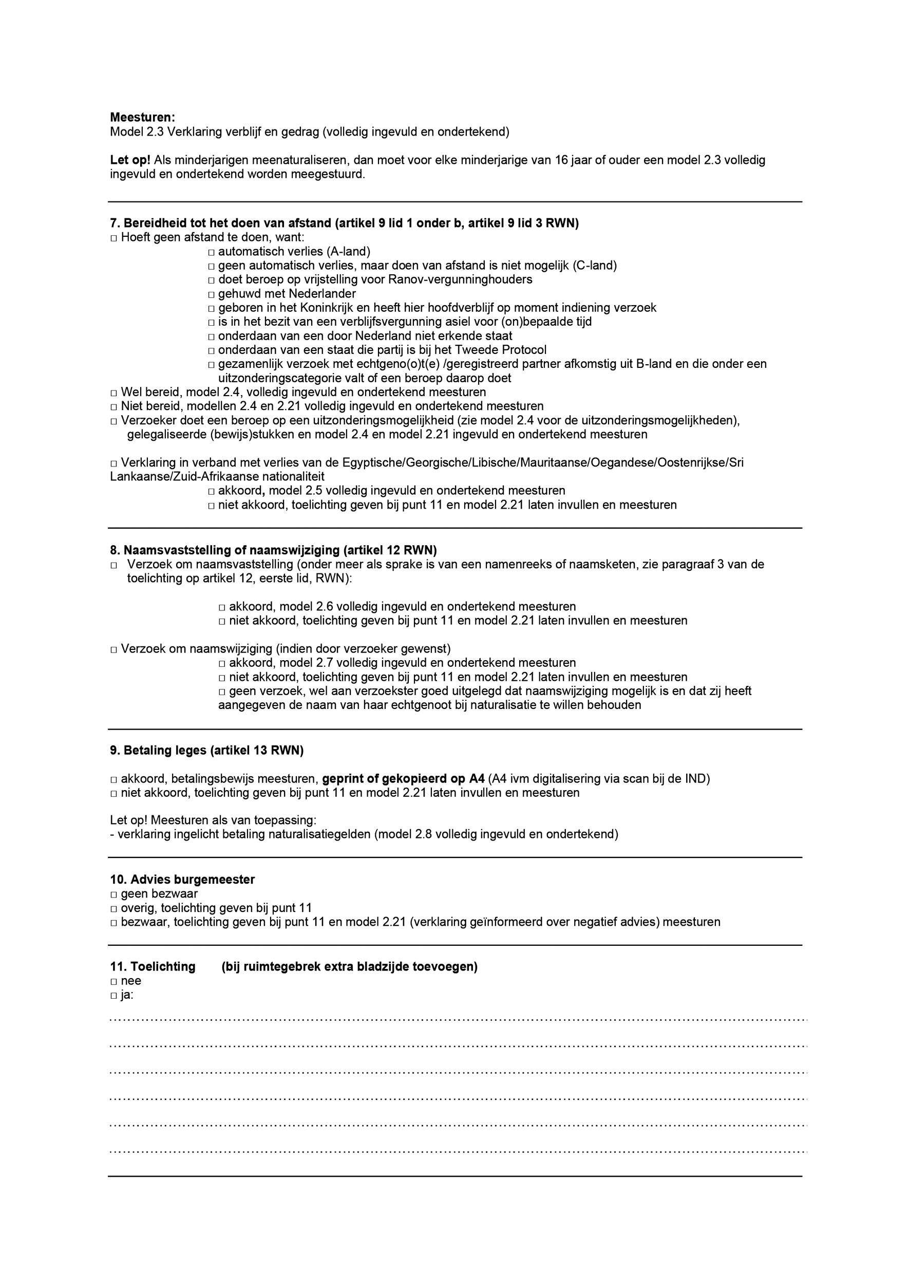 Verder is in de modellen 2.17 en 2.22 voor de toepassing van de Rijkswet op het Nederlanderschap 2003 een interne verwijzing naar de nieuwe hernummering aangepast.