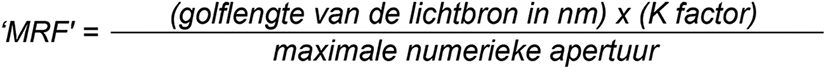 Technische noten: 1. De ‹minimum resolvable feature size› (MRF) wordt berekend volgens de volgende formule: |