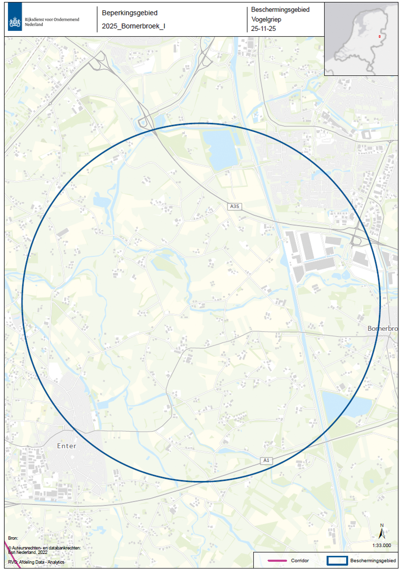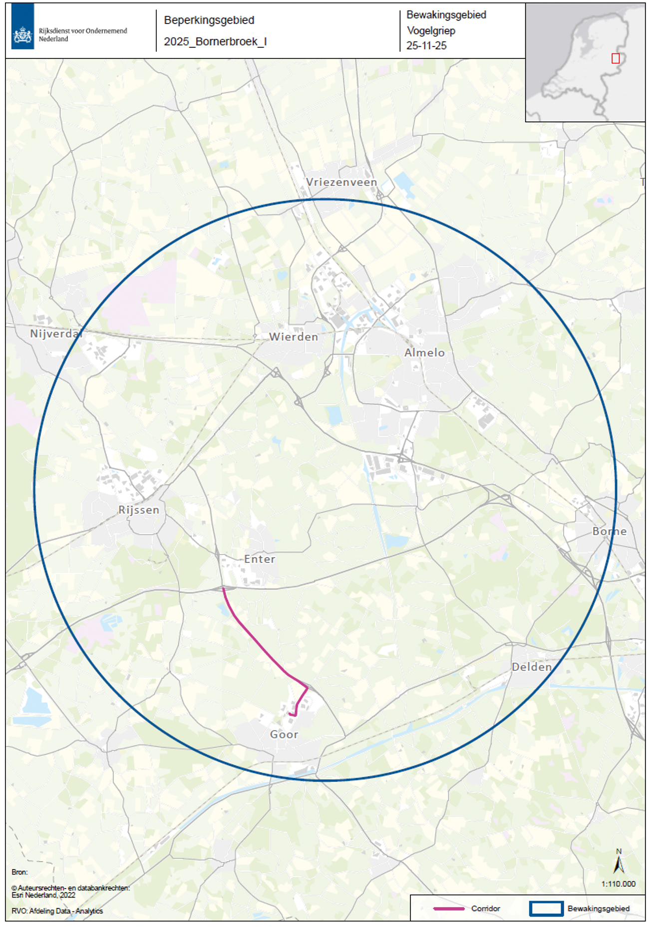 Op een inrichting in Bornerbroek in de provincie Overijssel is een uitbraak geconstateerd van aviaire influenza, waarschijnlijk hoogpathogene aviaire influenza (HPAI), ofwel vogelgriep. HPAI is een besmettelijke dierziekte, die tot hoge sterftecijfers kan leiden bij vogels en kan worden overgedragen op mensen (een zogenoemde zoönose). Het isoleren van de gevonden besmettingshaard en het voorkomen van verdere verspreiding van de ziekte is daarom van het grootste belang.