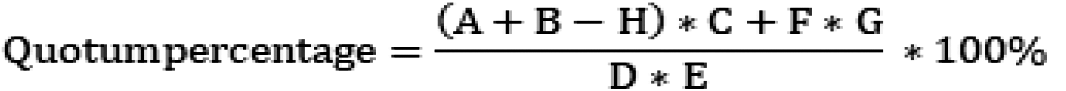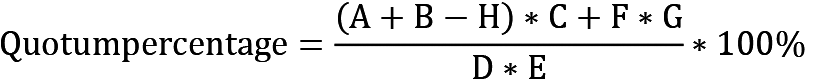 Dit leidt tot de volgende formule voor de berekening van het quotumpercentage: