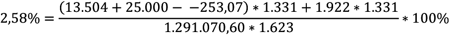 • Variabele C = 1.331: het gemiddeld aantal verloonde uren van mensen met een arbeidsbeperking in de sector overheid en de sector niet-overheid tezamen. 1.331 verloonde uren per jaar komen overeen met gemiddeld 25,5 uur per week.
