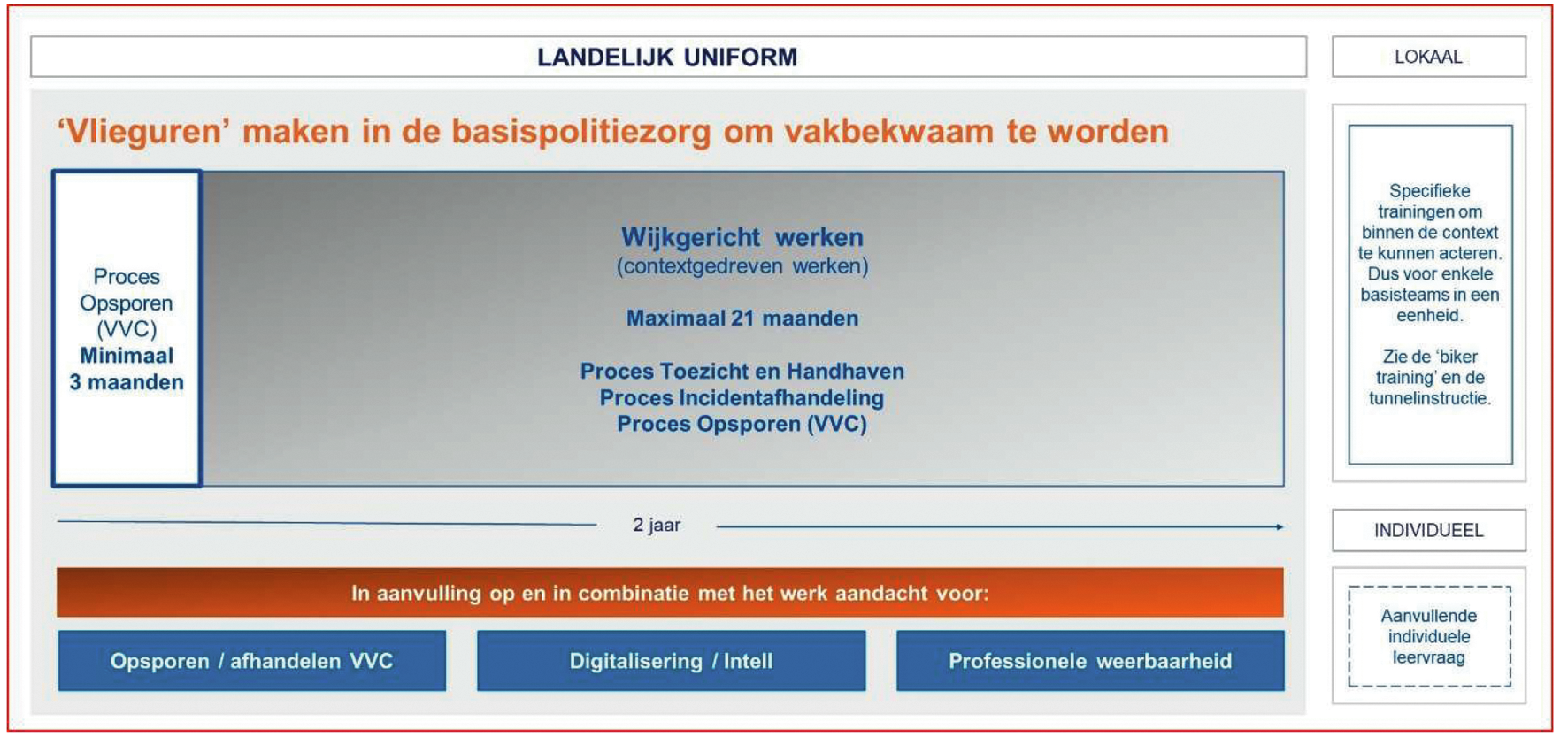 • Het leren ‘in, van en door het werk’ door het maken van vlieguren in drie processen van de basispolitiezorg: Toezicht & Handhaven, Incidentafhandeling en Opsporen (VVC).