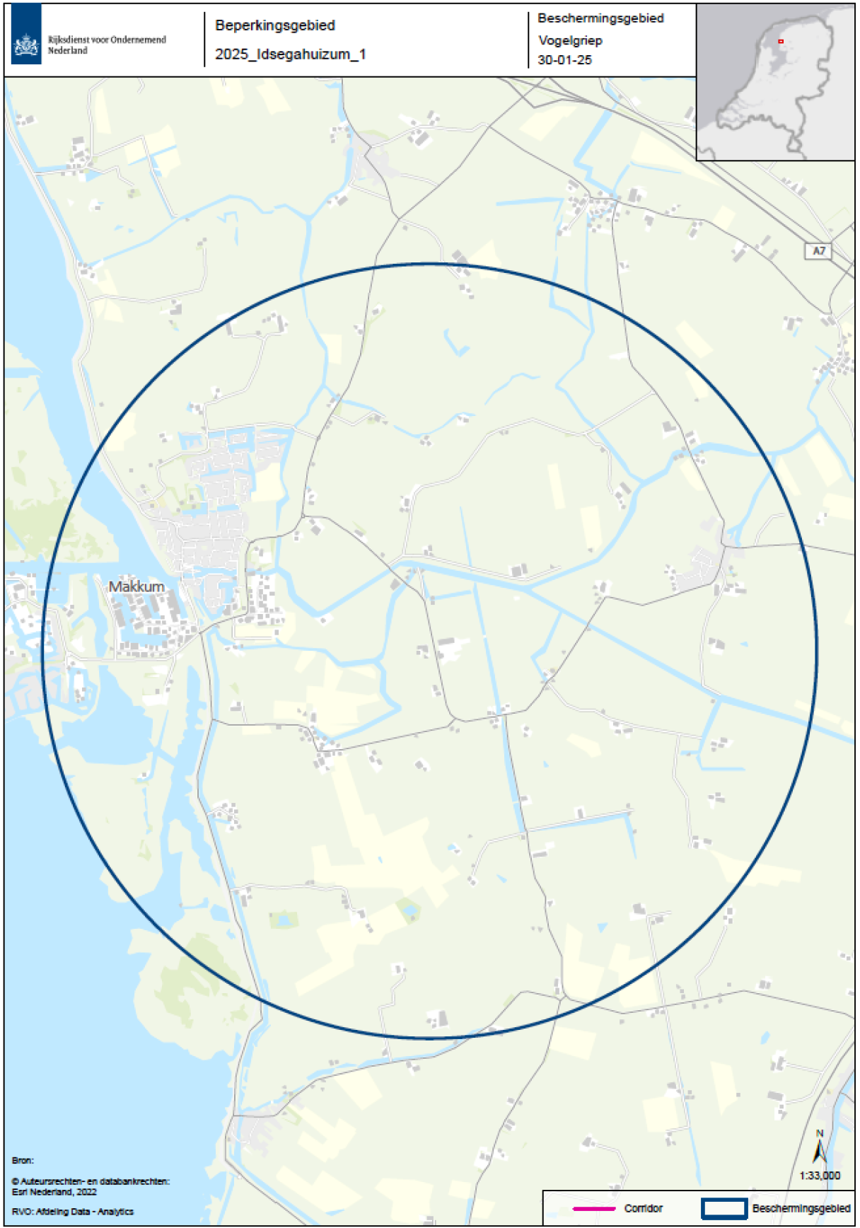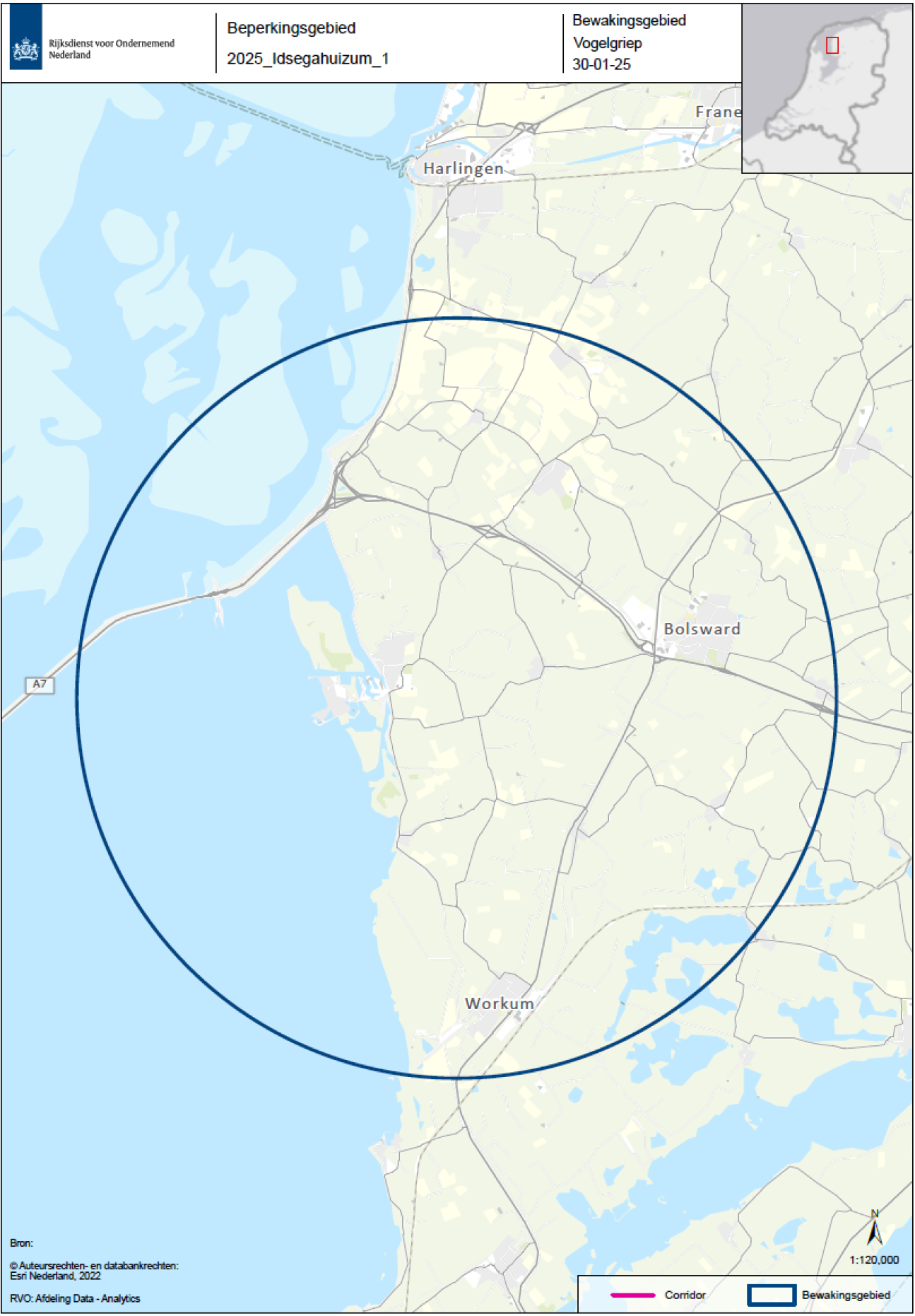 Op een inrichting in Idsegahuizum, gemeente Súdwest-Fryslân, in de provincie Friesland is een uitbraak geconstateerd van hoogpathogene aviaire influenza (HPAI), ofwel vogelgriep. HPAI is een besmettelijke dierziekte, die tot hoge sterftecijfers kan leiden bij vogels en kan worden overgedragen op mensen (een zogenoemde zoönose). Het isoleren van de gevonden besmettingshaard en het voorkomen van verdere verspreiding van de ziekte is daarom van het grootste belang.