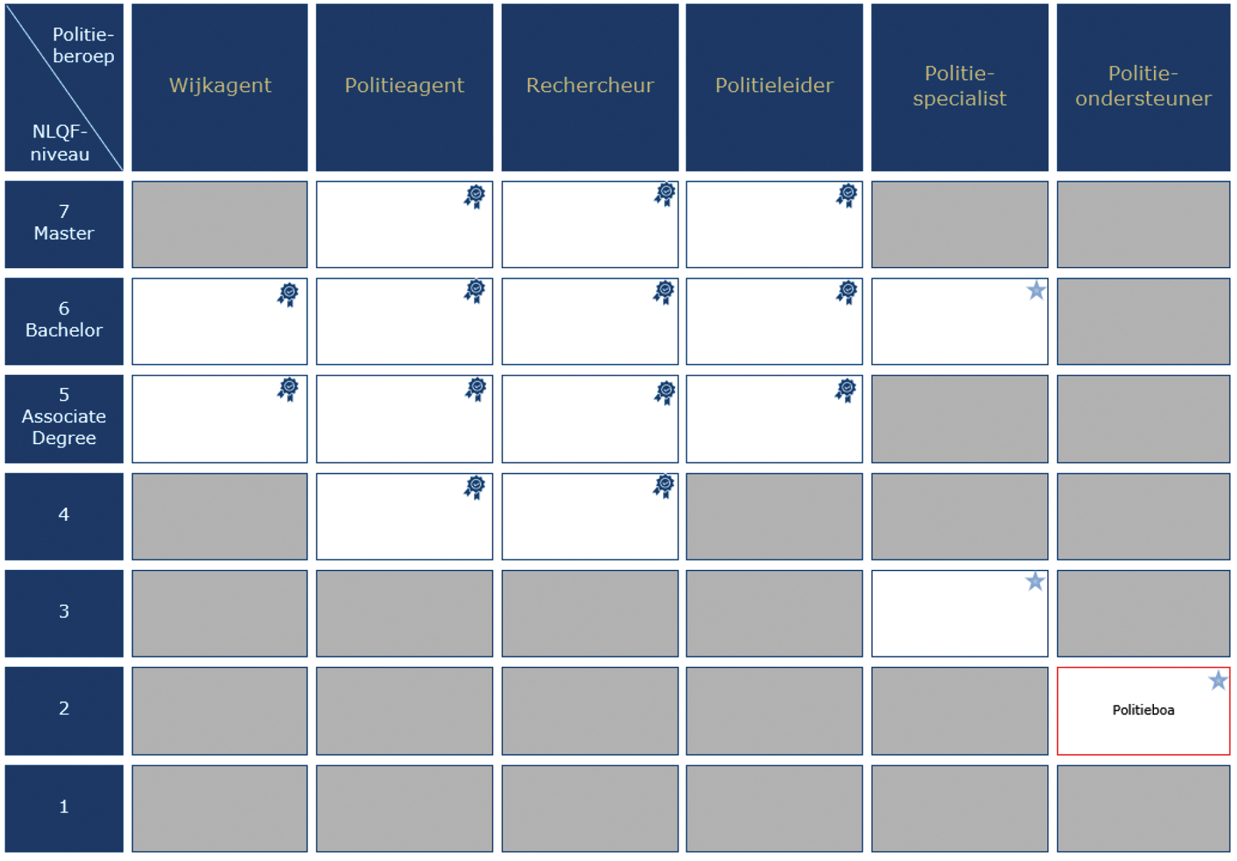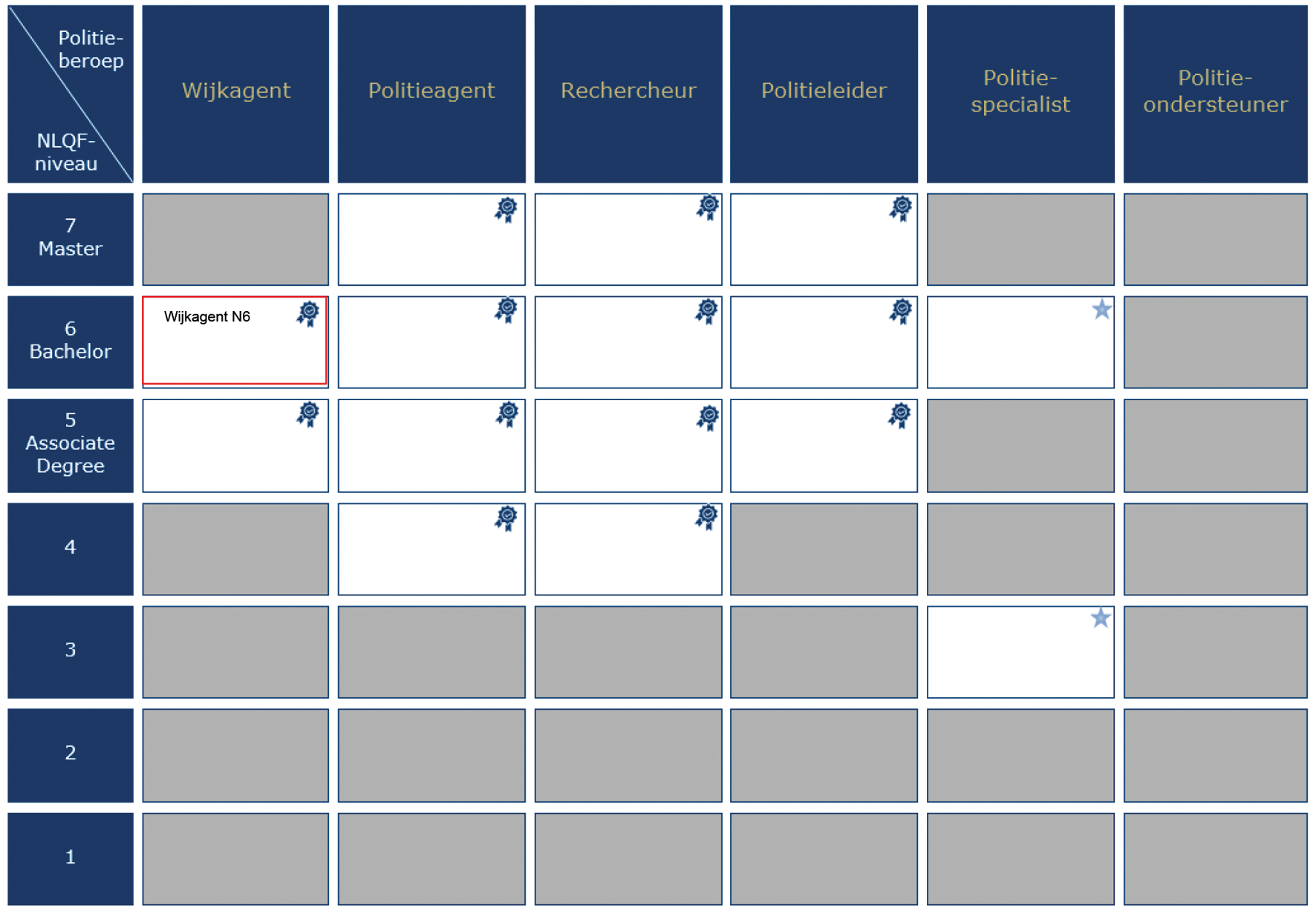 Op dit moment herijkt de Politie de huidige beroepsprofielen. De uitkomst hiervan kan mogelijk invloed hebben op de gekozen indeling.