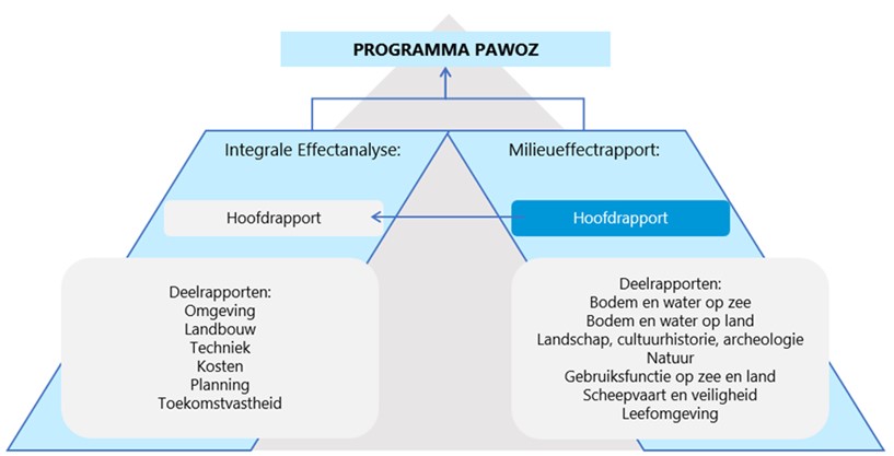 Voor elke route gelden andere effecten en zijn er andere medegebruikers. Per route is onderzocht wat de effecten zijn voor die route. Deze informatie vormt input voor het Programma. In het Programma worden de routes geprioriteerd. Dit betekent dat een route de voorkeur krijgt boven een andere route om verder onderzocht te worden in de projectprocedure (hoofdstuk 6). Bij de ontwikkeling van TNW en DDW en andere windenergiegebieden in de toekomst wordt de prioritering van nieuw te realiseren routes in dit Programma gebruikt om de windenergiegebieden aan te sluiten. 7 PAWOZ-Eemshaven draagt zo bij aan het aansluiten van windenergiegebieden op zee en daarmee aan het terugbrengen van de Nederlandse CO2 uitstoot en de eigen energievoorziening, waarbij Nederland minder afhankelijk wordt van andere landen.In de onderliggende onderzoeken, waaronder het Milieueffectrapport (plan-mer, bijlage 1) en de Integrale Effectenanalyse (IEA, bijlage 2) zijn de effecten van het aanleggen en gebruiken van nieuw te realiseren kabelverbindingen en waterstofleidingen en bijbehorende infrastructuur beoordeeld.