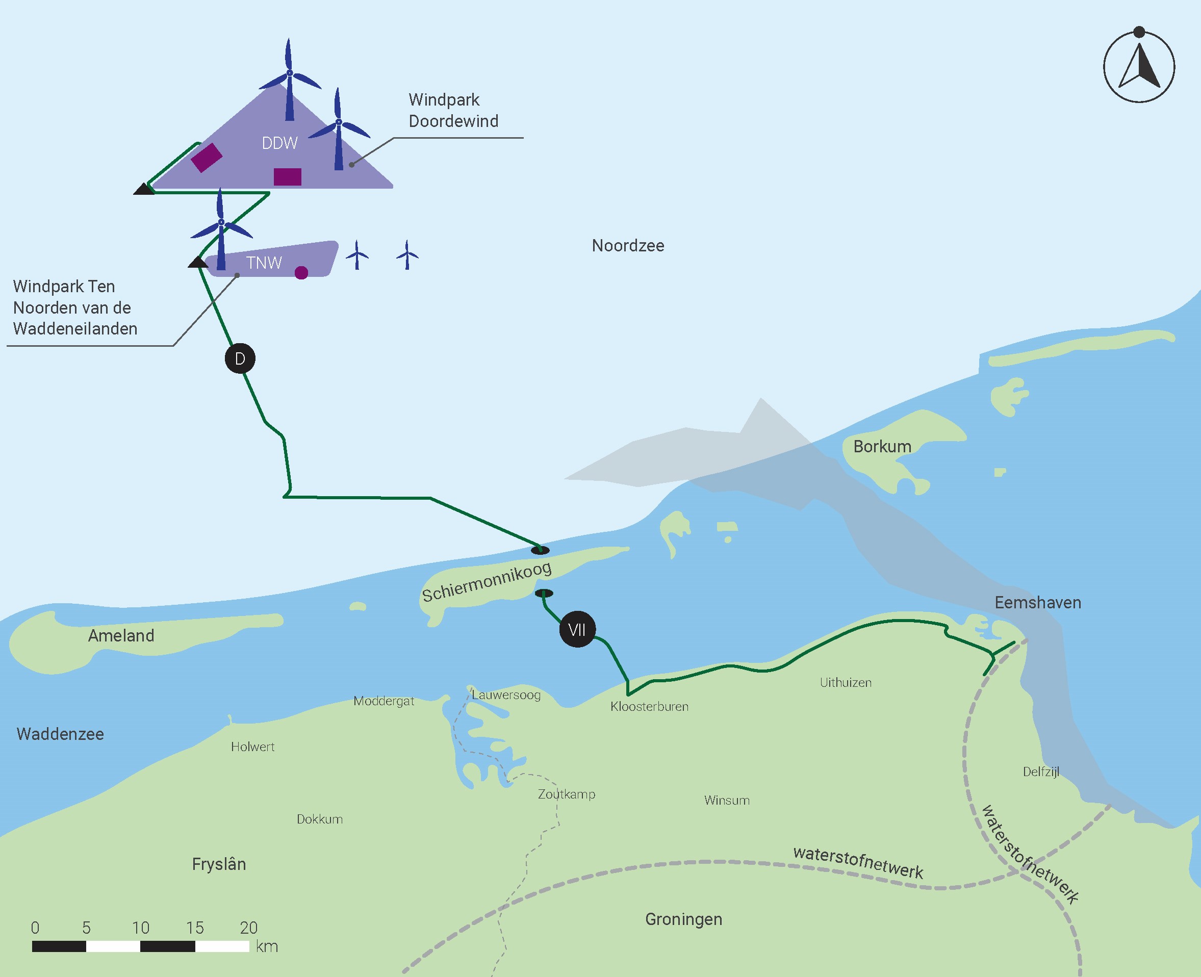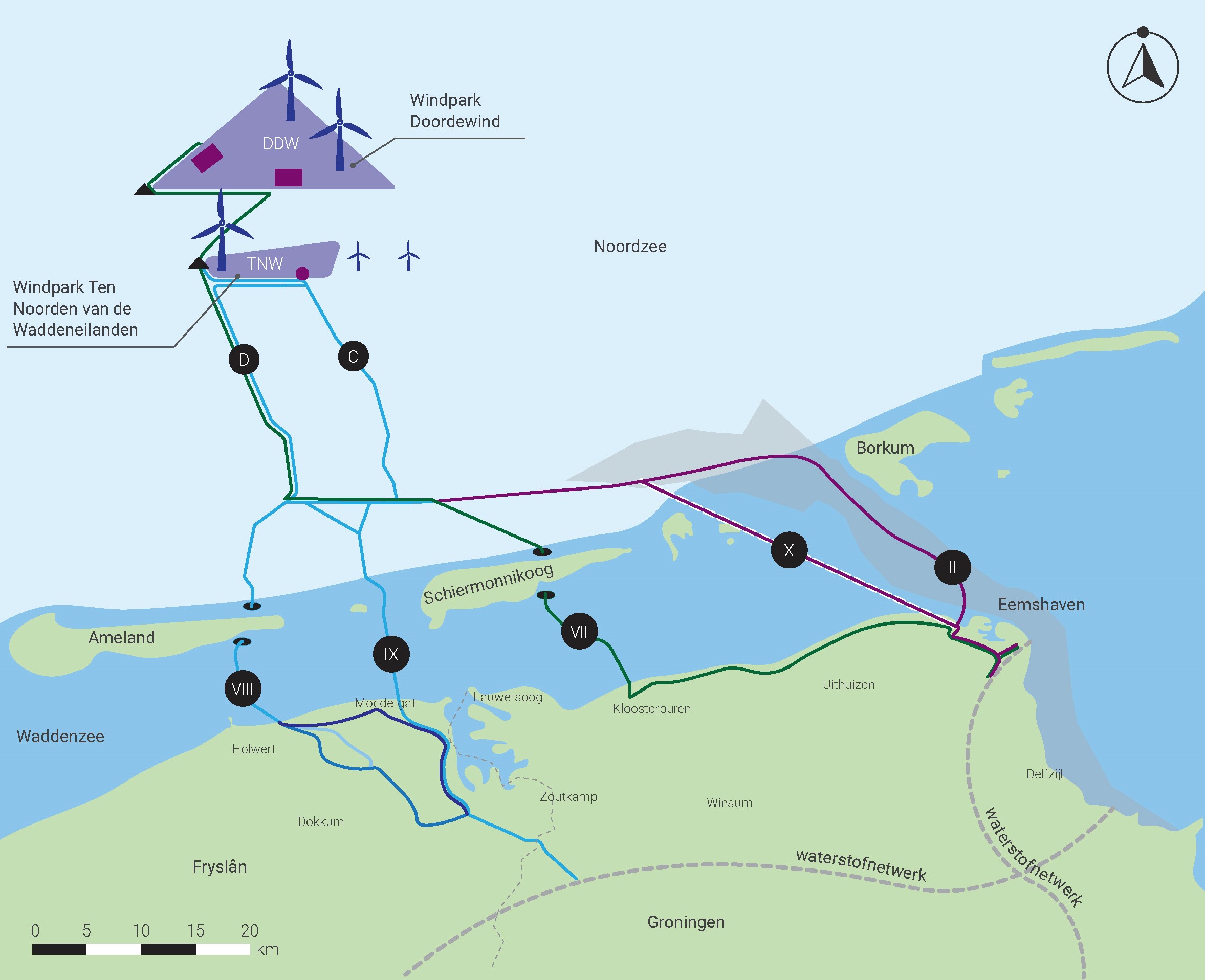 Het Rijk heeft de afgelopen jaren onderzocht waar op de Noordzee mogelijkheden zijn voor windenergiegebieden. Uit deze onderzoeken blijkt dat op de Noordzee, onder andere noordelijk van de Waddeneilanden, mogelijkheden zijn voor meerdere windenergiegebieden. Al deze windenergiegebieden samen kunnen veel duurzame energie opwekken. Niet alleen elektriciteit, maar ook de productie van waterstof op zee. Deze energie kan door middel van kabelverbindingen of waterstofleidingen getransporteerd worden via de Noordzee, de Waddenzee en het vasteland naar het landelijke hoogspanningsnet of het Waterstofnetwerk Nederland (WNN).